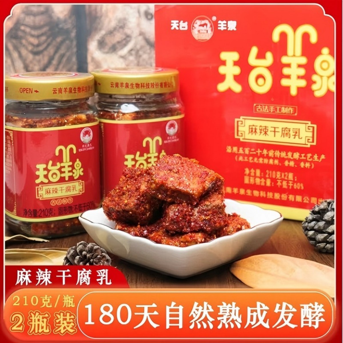 天台羊泉麻辣干腐乳云南特产牟定香辣豆腐乳臭豆腐210g*2瓶