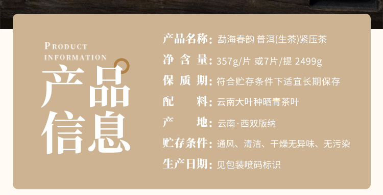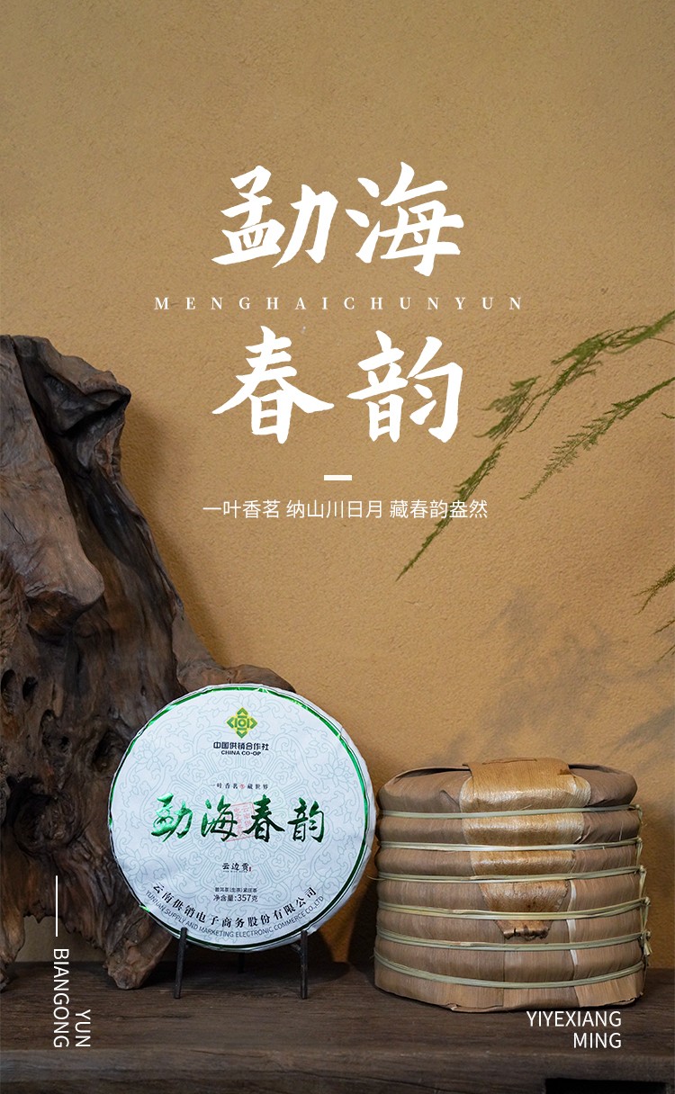 商品名称:云边贡 勐海春韵 普洱茶生茶357g茶饼 云南供销社茶山直供