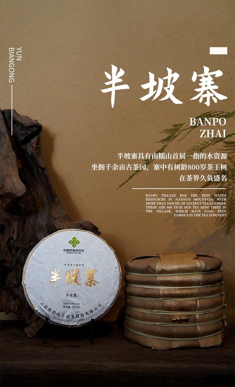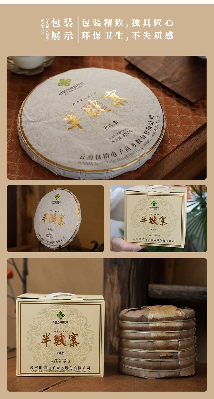 商品名称:云边贡 半坡寨 普洱茶生茶357g茶饼 云南供销社茶山直供