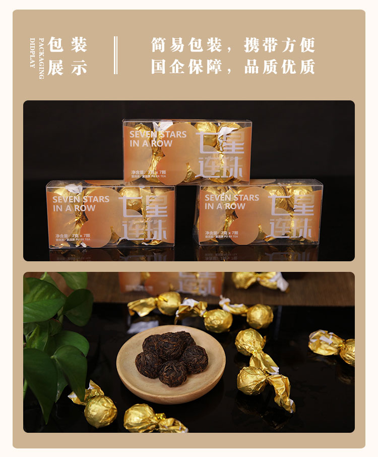 商品名称:云边贡七星连珠普洱茶熟茶龙珠茶49g盒装 云南供销社茶山直供