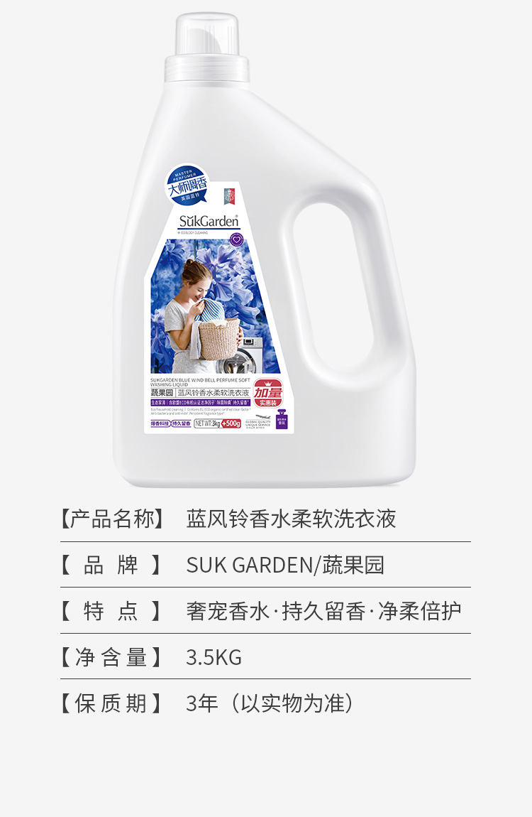 商品名称:SukGarden蔬果园 蓝风铃香水柔软洗衣液 (加量装) 3.5kg
