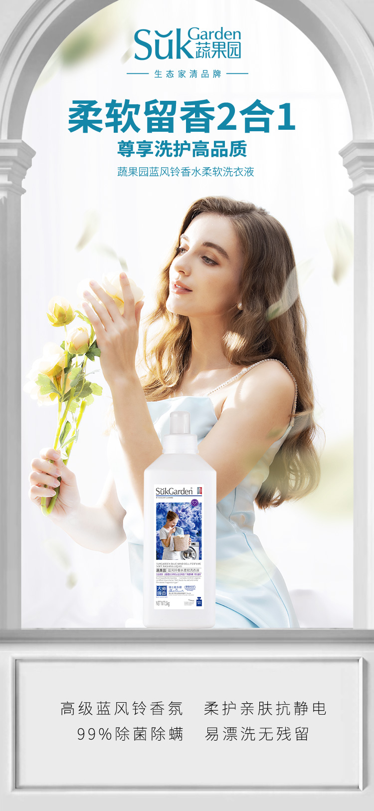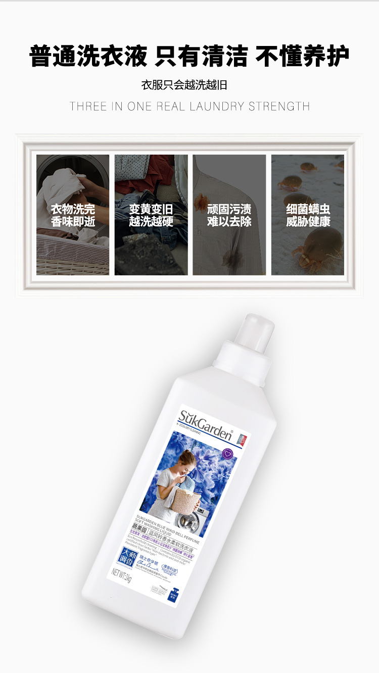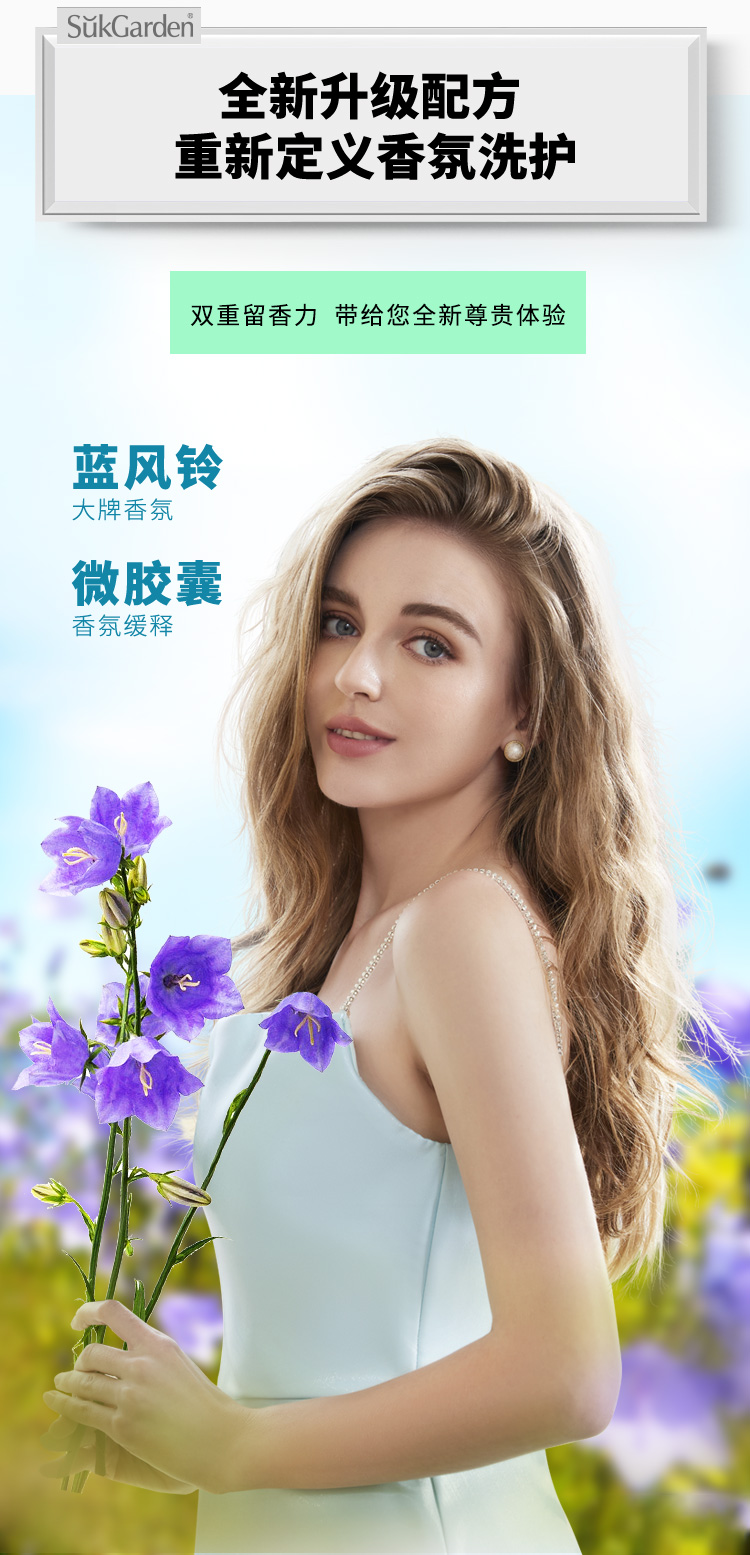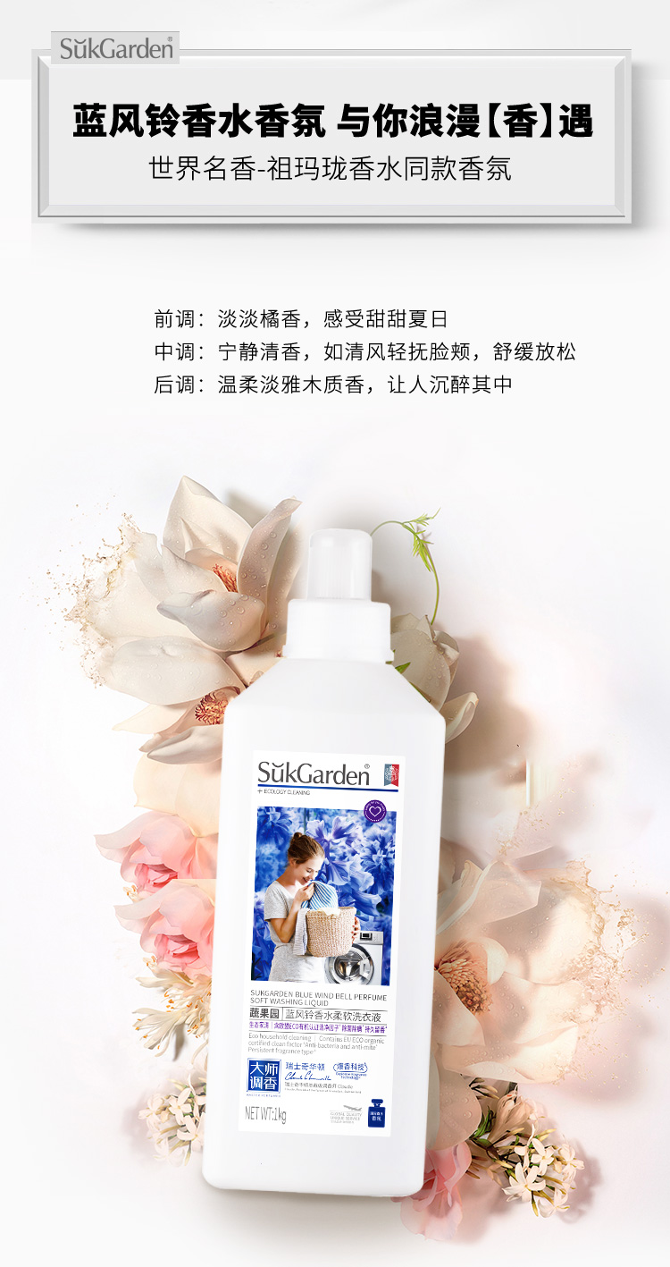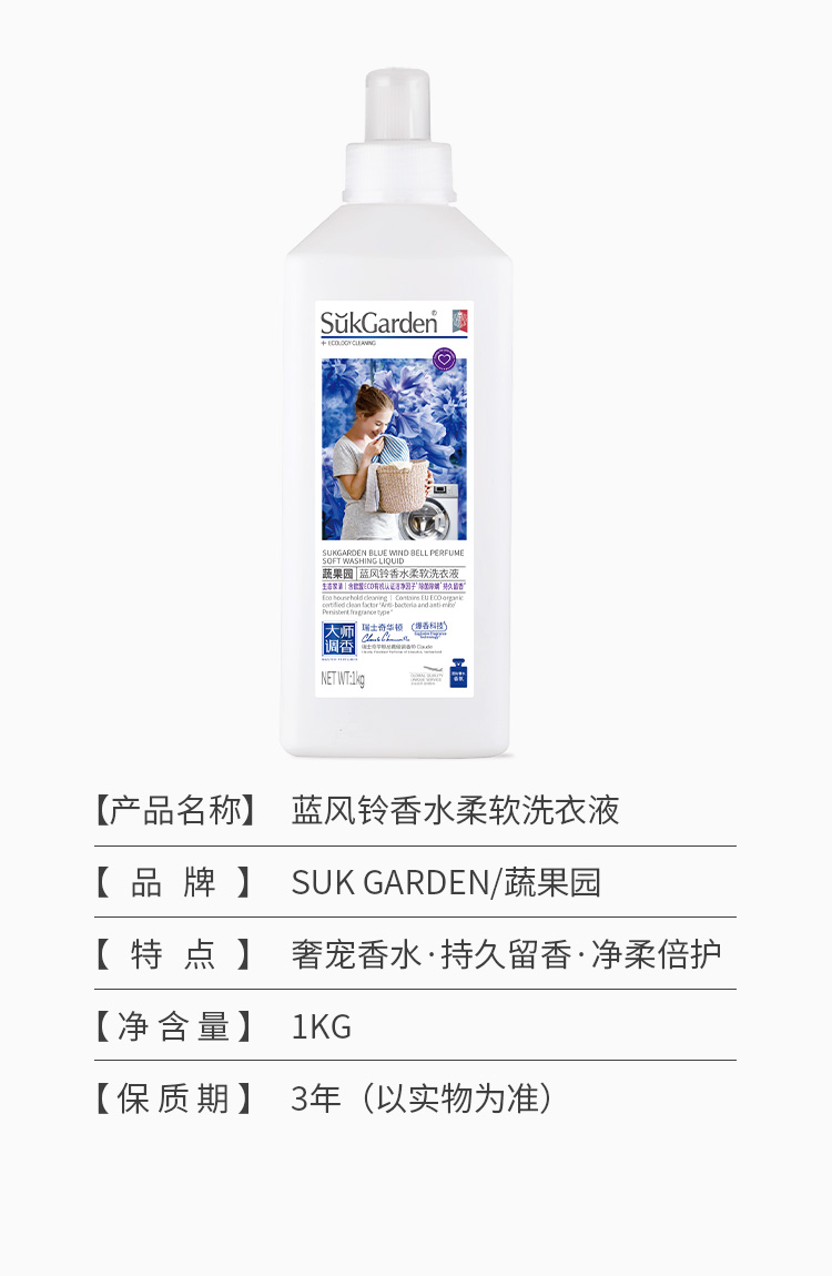 商品名称:SukGarden蔬果园 蓝风铃香水柔软洗衣液 (持久留香型) 1kg