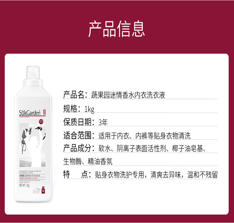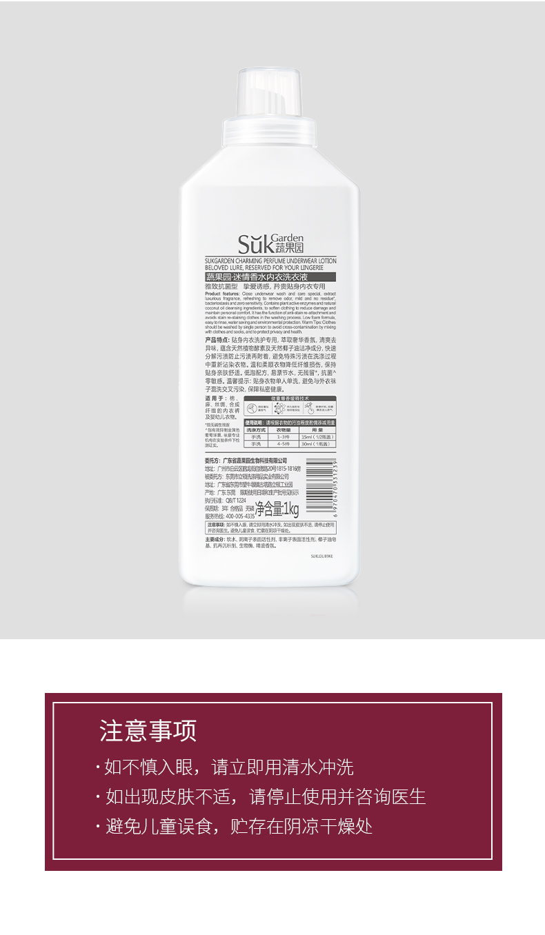 商品名称:SukGarden蔬果园 迷情香水内衣洗衣液 (雅致抗菌型) 1kg