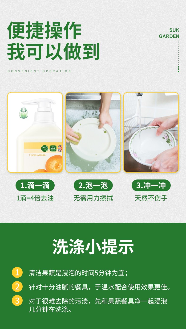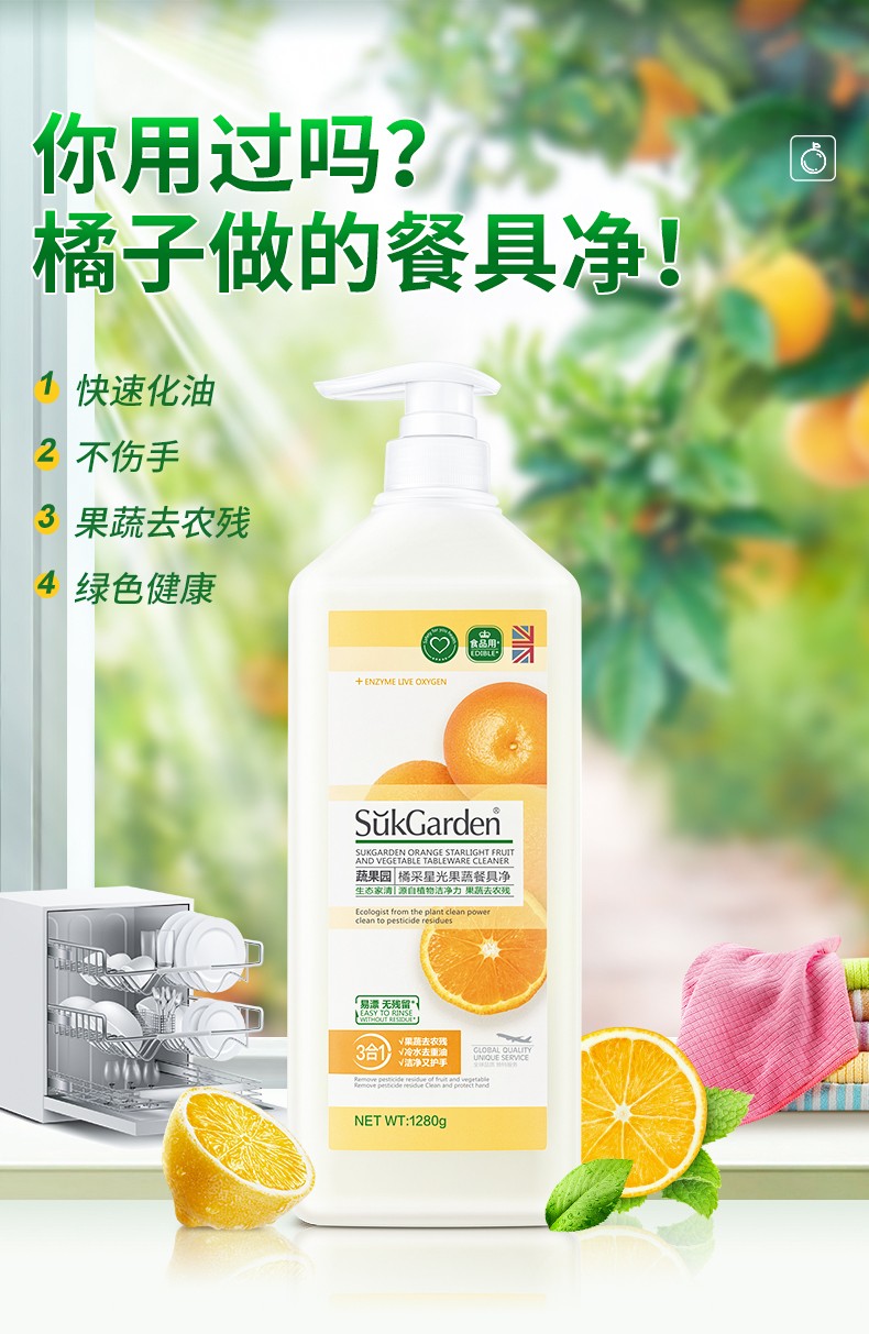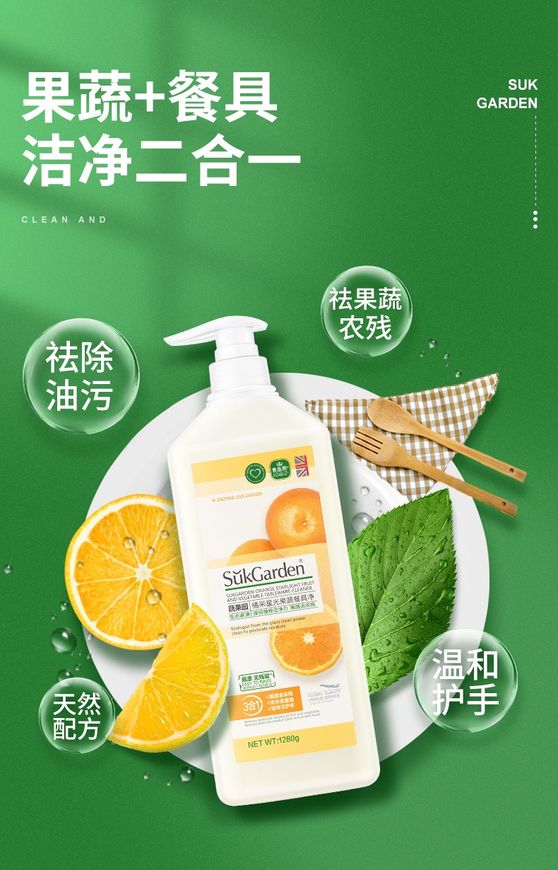 SukGarden蔬果园 橘采星光果蔬餐具净 1.28kg