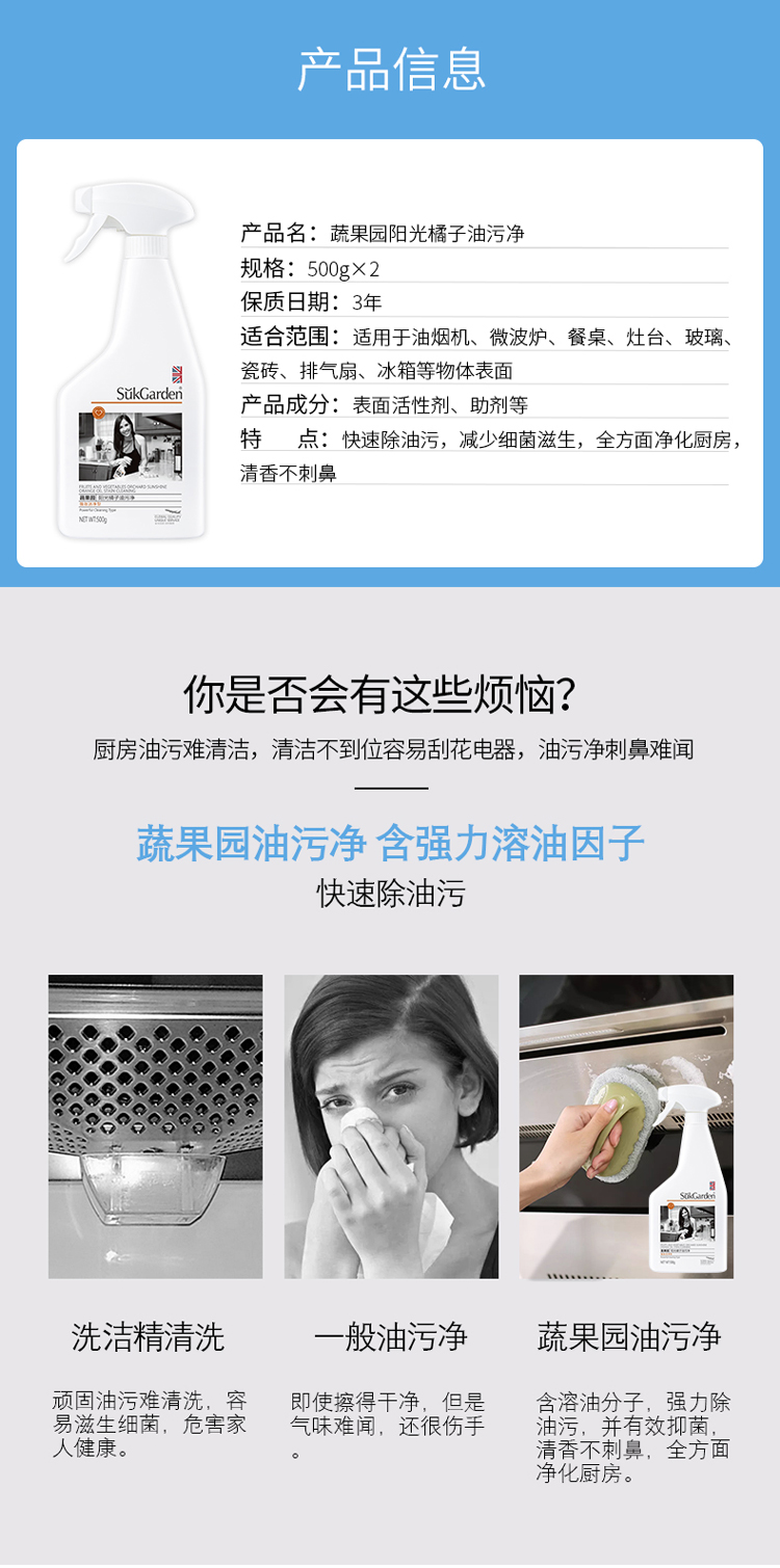 商品名称:SukGarden蔬果园 阳光橘子油污净 (强效洁净型) 500g