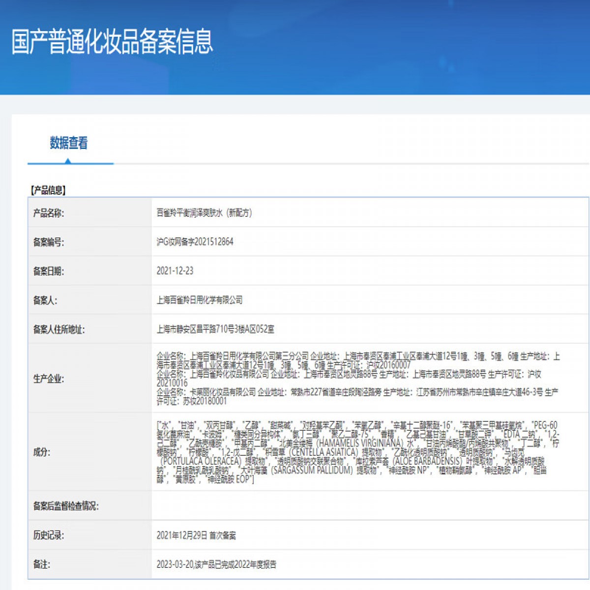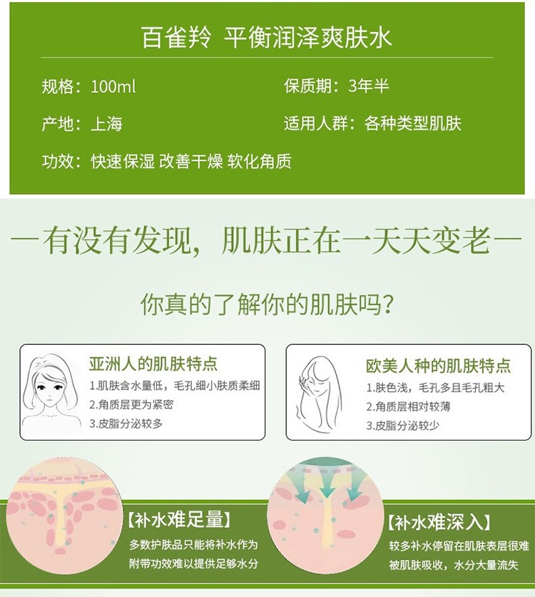 商品名称:百雀羚 草本平衡润泽爽肤水 100ml