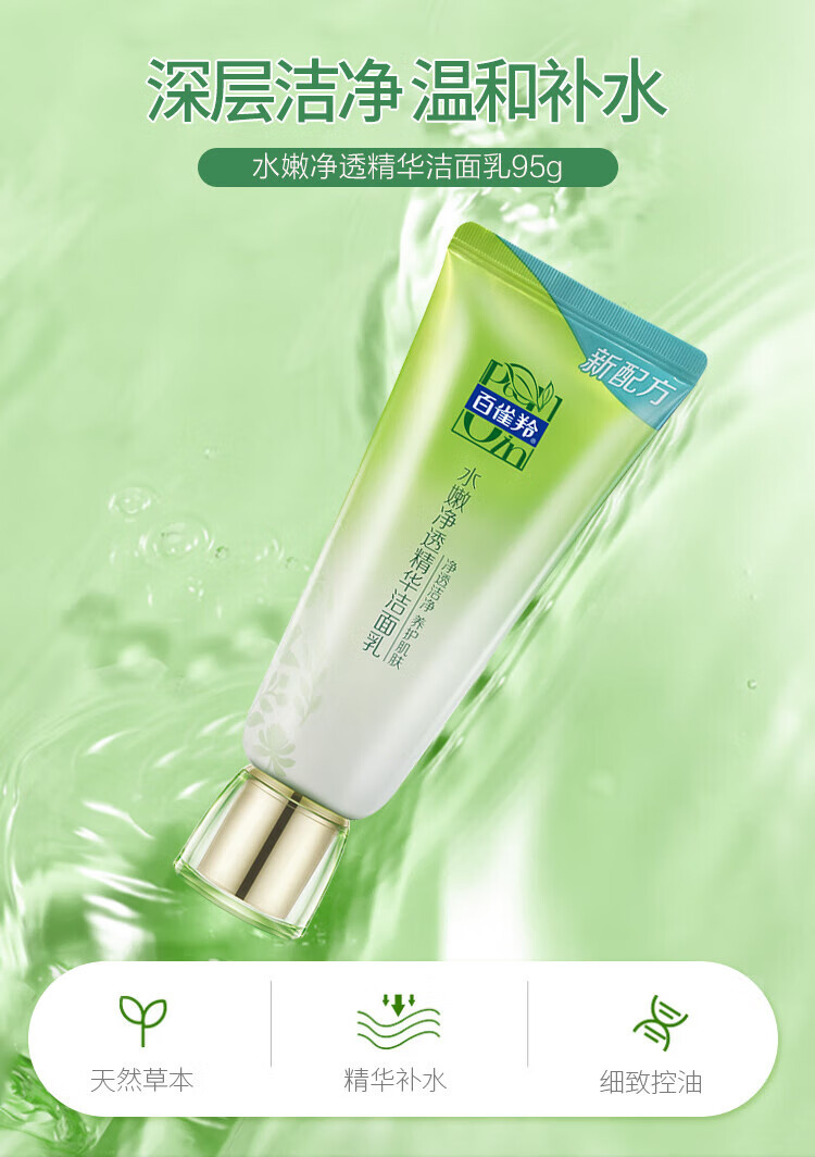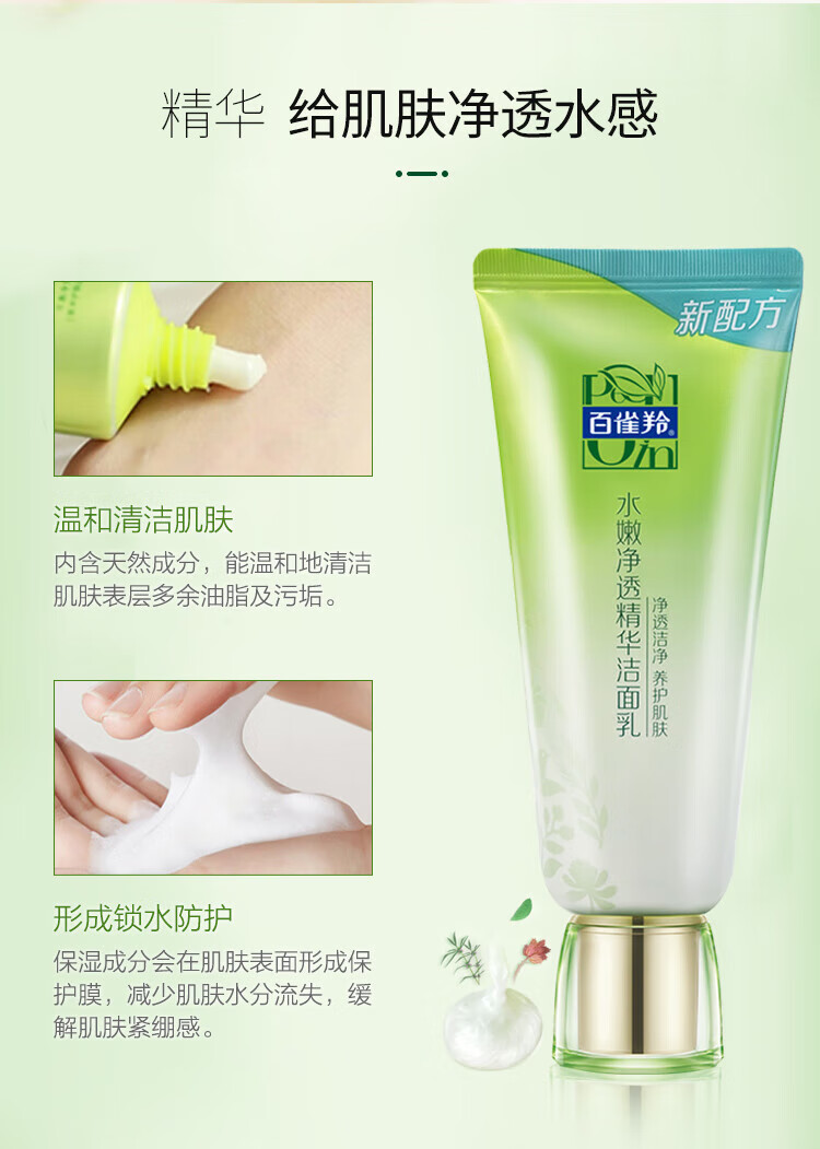 商品名称:百雀羚 水嫩净透精华洁面乳 95g