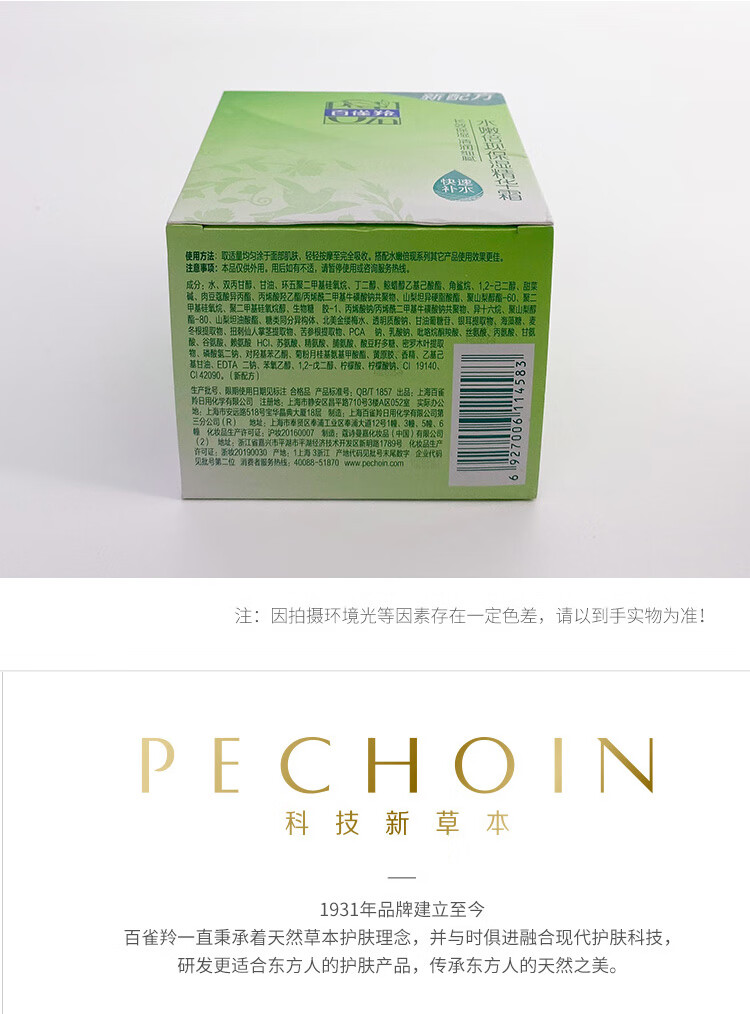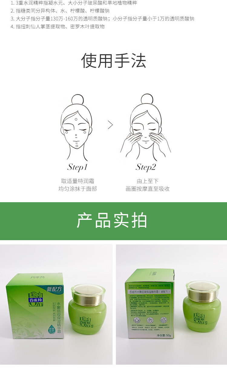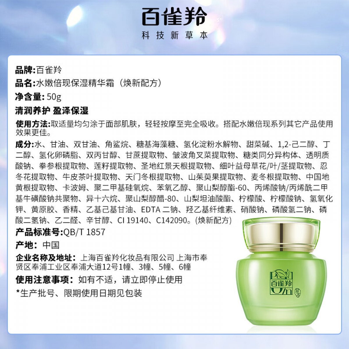 商品名称:百雀羚 水嫩倍现保湿精华霜 50g