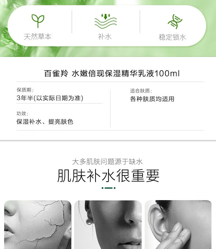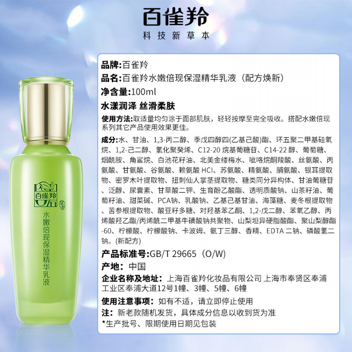 商品名称:百雀羚 水嫩倍现保湿精华乳液 100ml