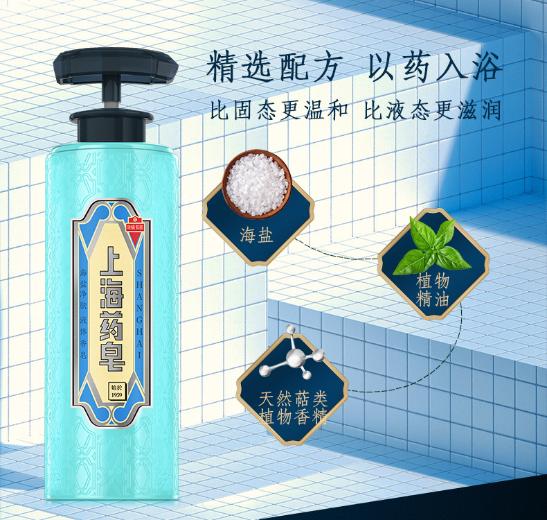商品名称:上海药皂 海盐净肤液体香皂 620g