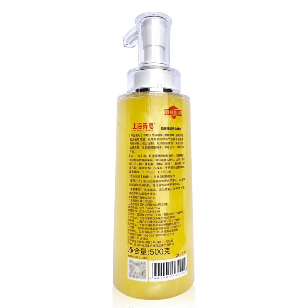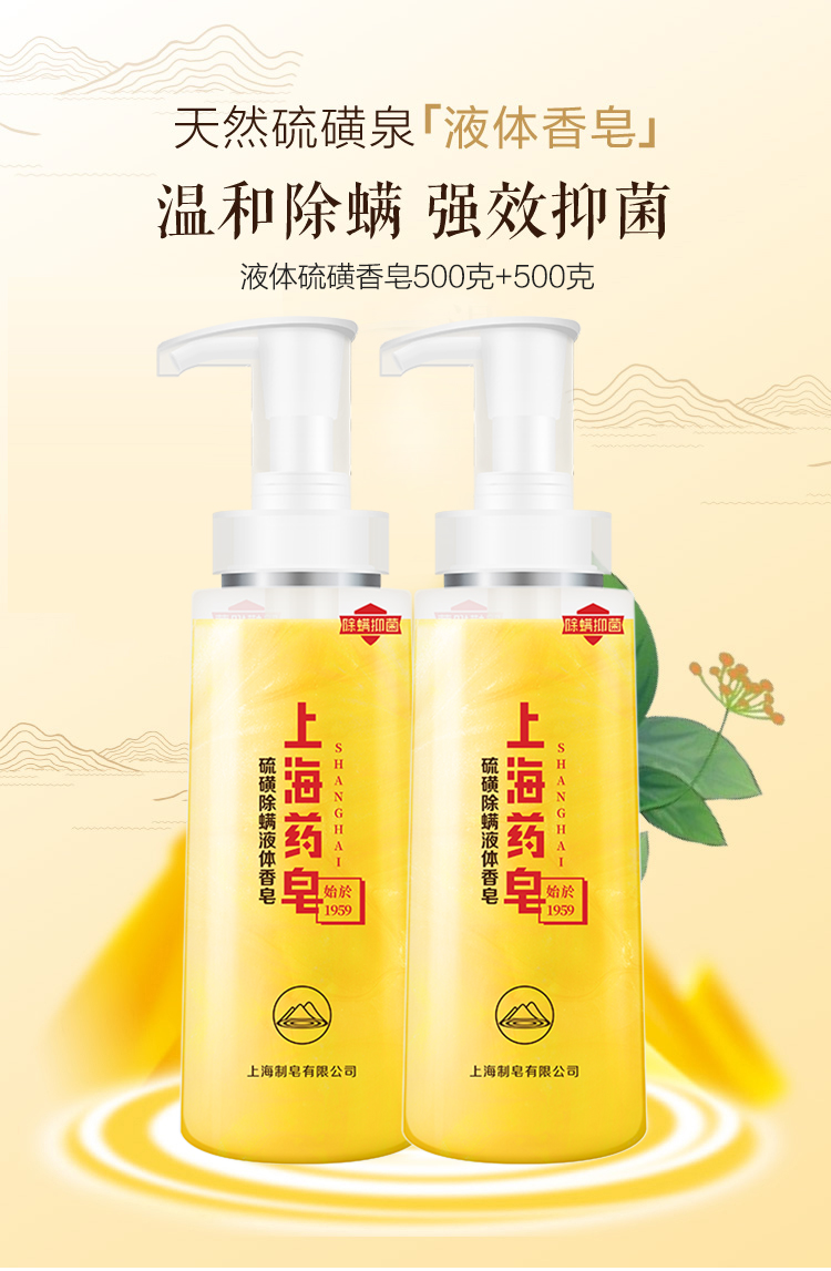 商品名称:上海药皂 硫磺沐浴露家庭装 500g*2