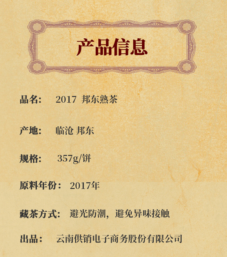 商品名称:赢供销 2017年邦东熟茶 普洱茶熟茶357g 云南供销社茶山直供