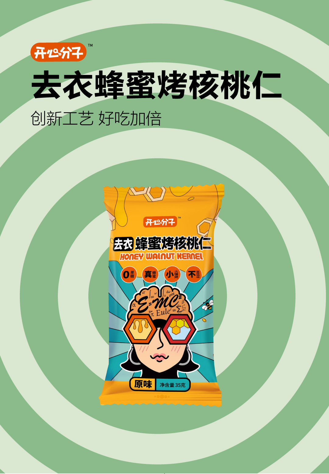 去衣蜂蜜烤核桃仁(原味35g)*6