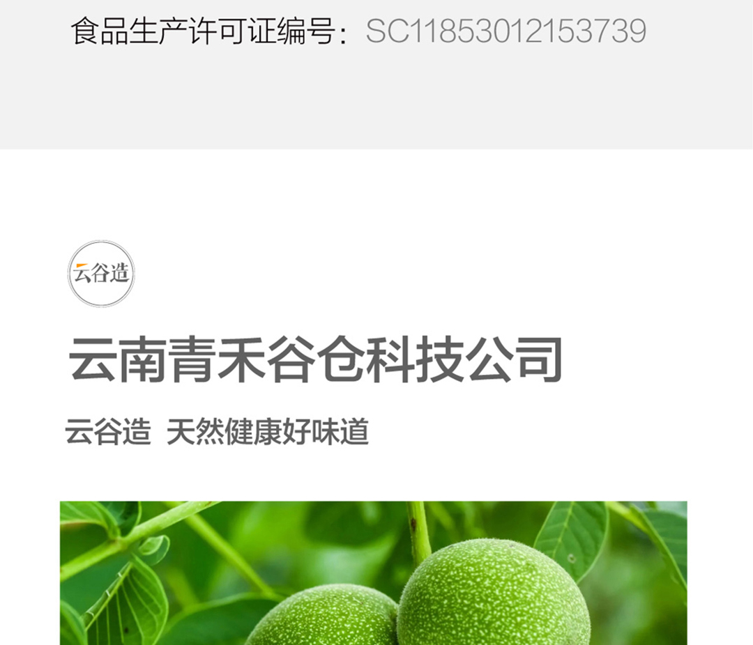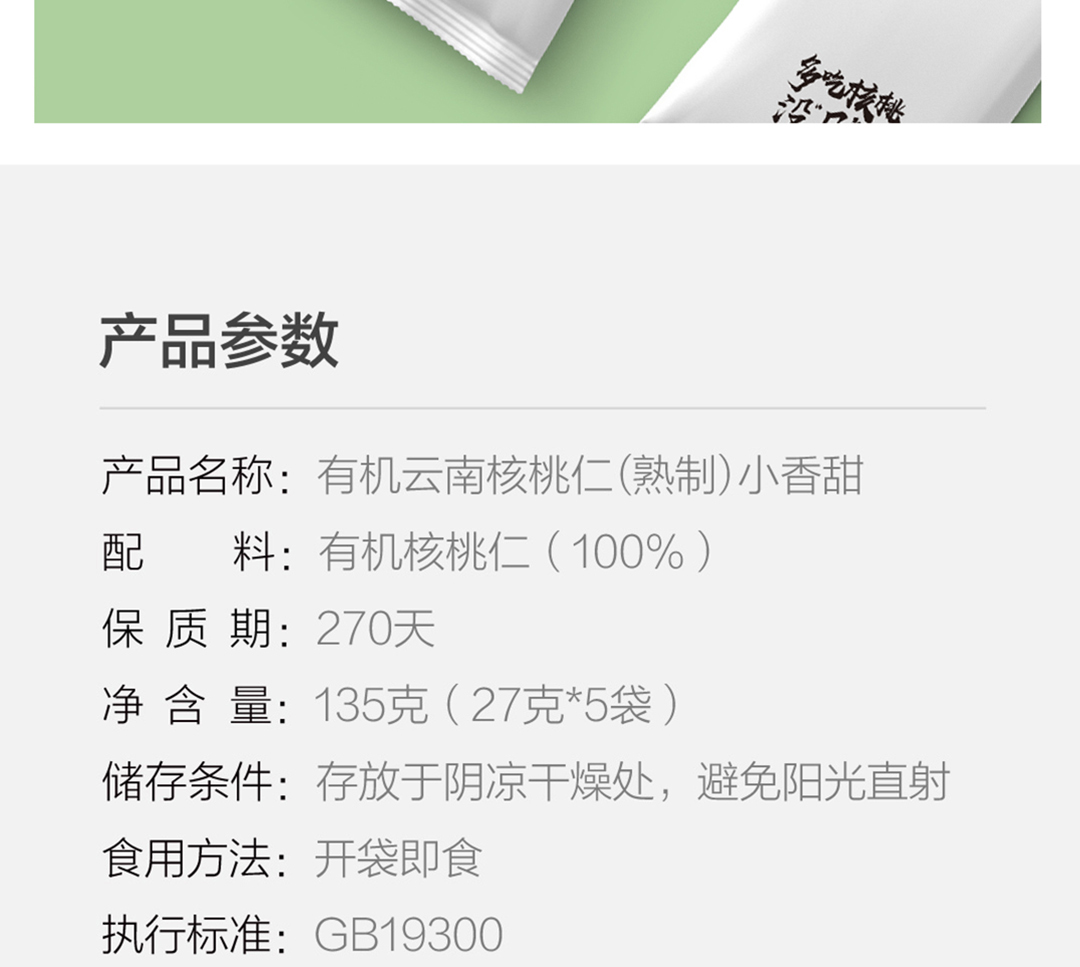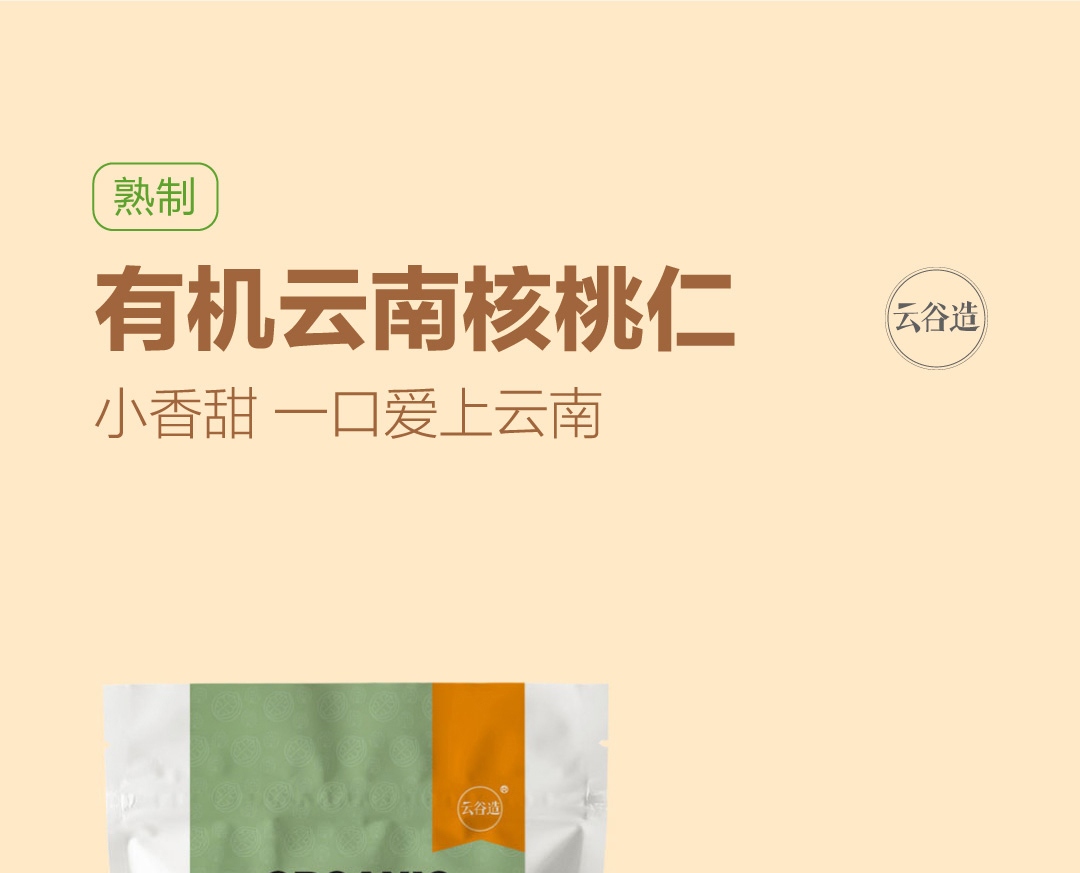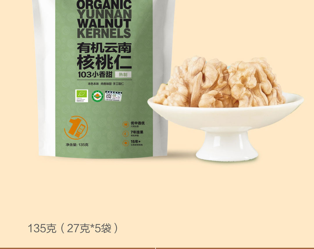 商品名称:云谷造有机云南核桃仁 103小香甜 (熟制)3袋