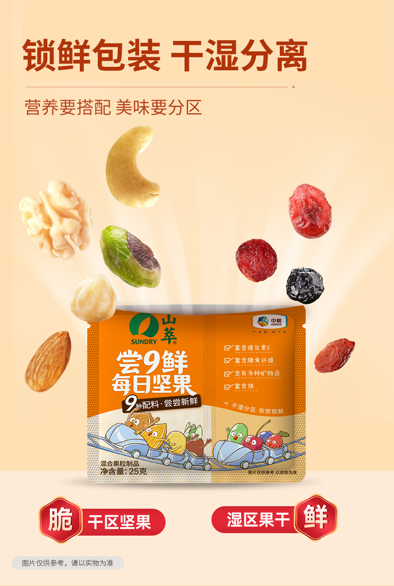 商品名称:山萃尝9鲜每日坚果750g(30袋*25g)