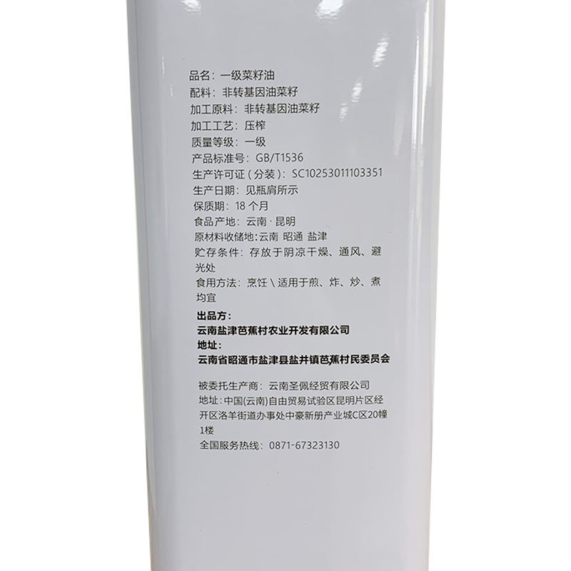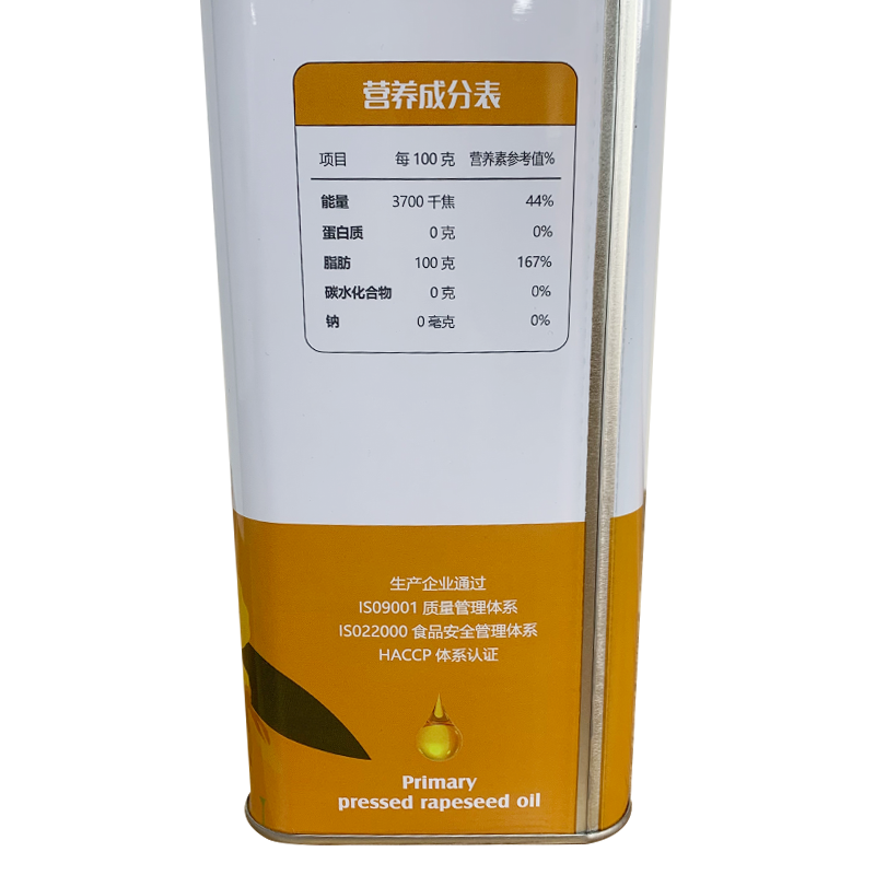 商品名称:云南精选一级菜籽油(马克铁桶装)5L