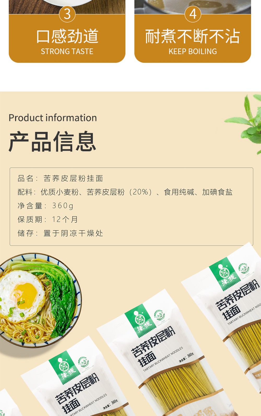 商品名称:云南昭通苦荞皮层粉挂面(360g装)