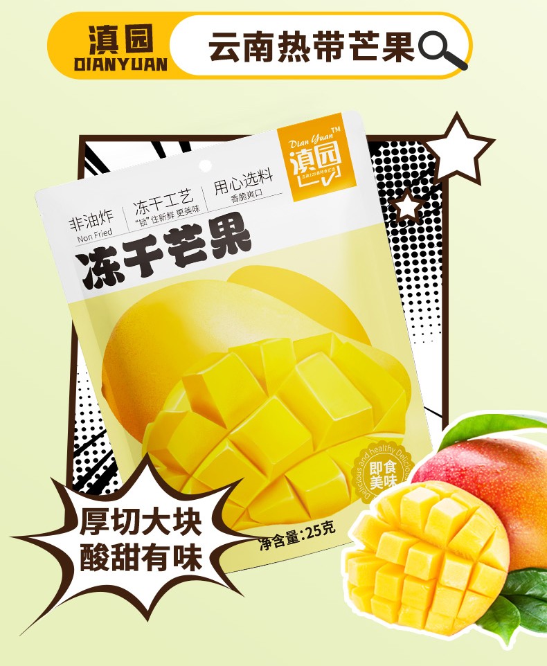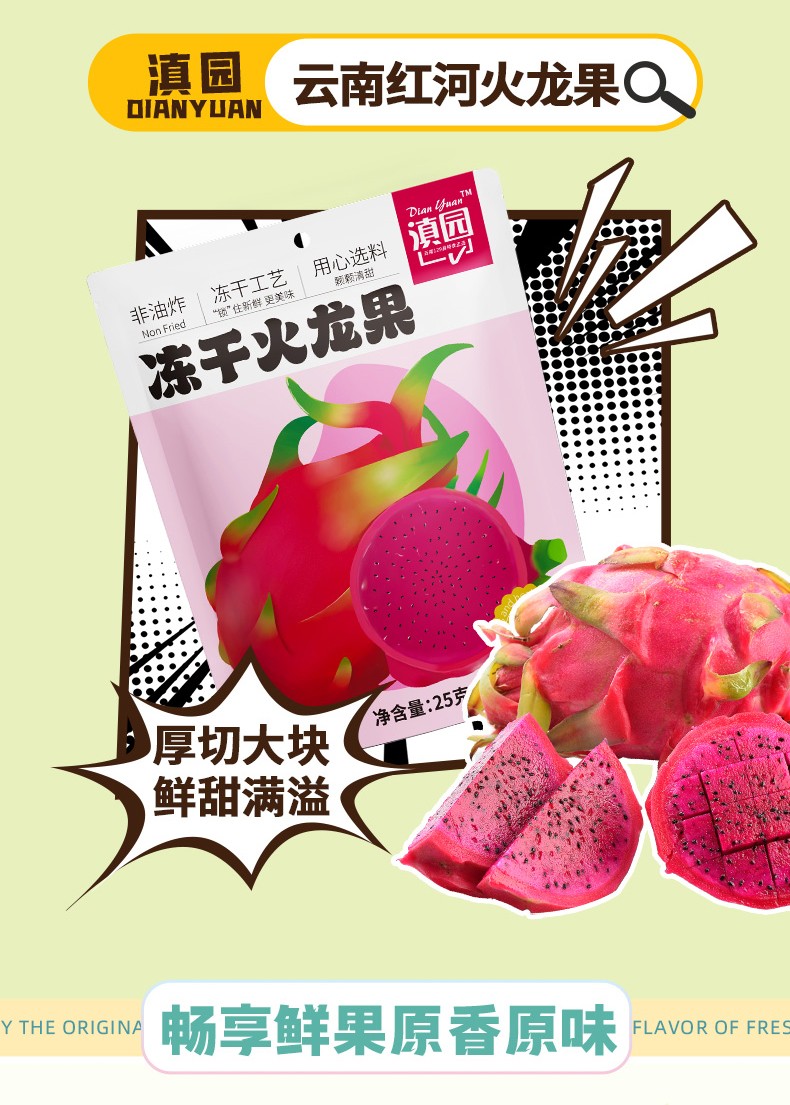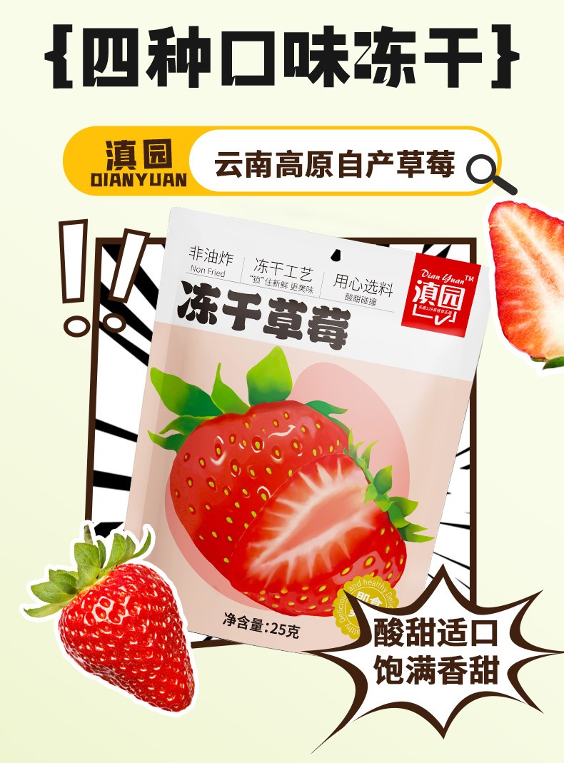 商品名称:滇园 冻干水果干(草莓/香蕉/火龙果/芒果)