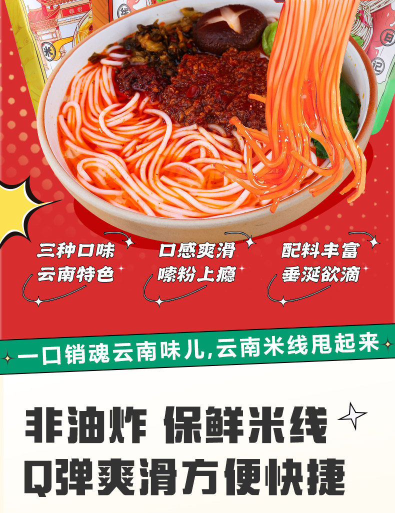 很少有这么好吃口感这么好的速食米线,还有三种口味,每一种都是新的体验,包装很高级,会再回购的!