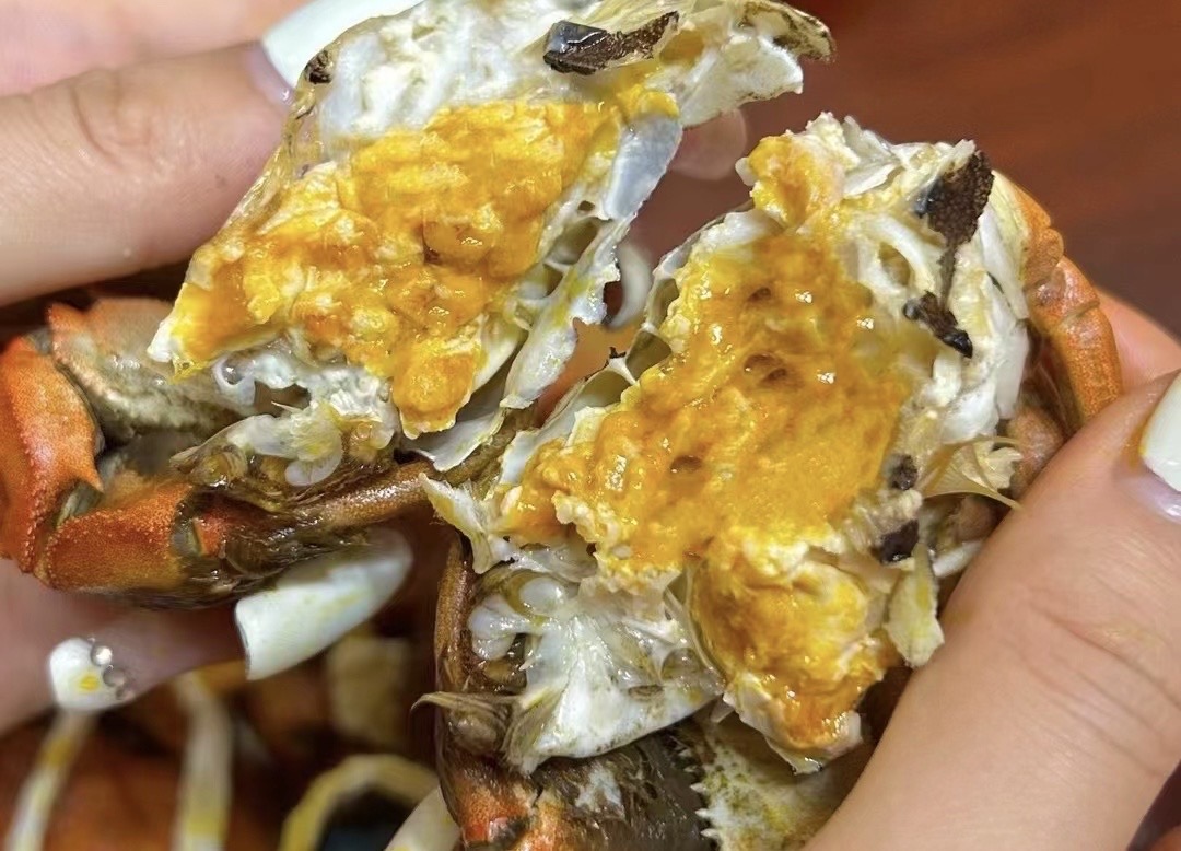 是真的阳澄湖的大闸蟹,蟹肉细嫩,很肥,蟹黄饱满,简简单单蒸熟之后,香味满满,就馋这一口。