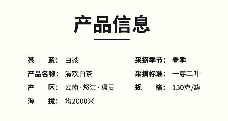 商品名称:【温泉山谷 拍1发2】云边贡清欢白茶怒江福贡高山野生白茶150克罐装