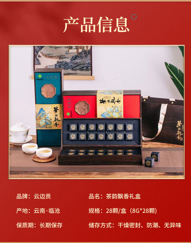 商品名称:云边贡 定制款龙珠茶礼盒 28颗 (224克/盒) 云南供销社茶山直供