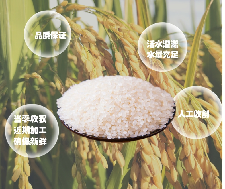 颗粒饱满,色泽光滑亮丽,清香怡人,米饭可口回甜。活水灌溉,当季人工收割,近期加工,确保新鲜