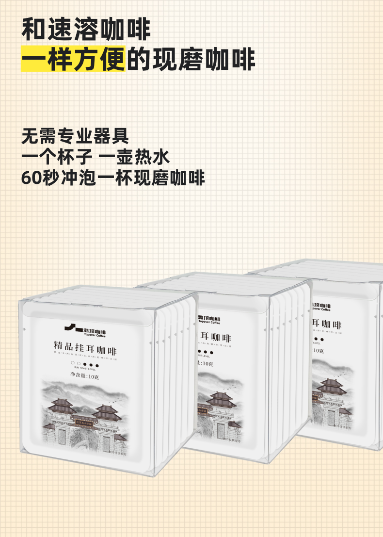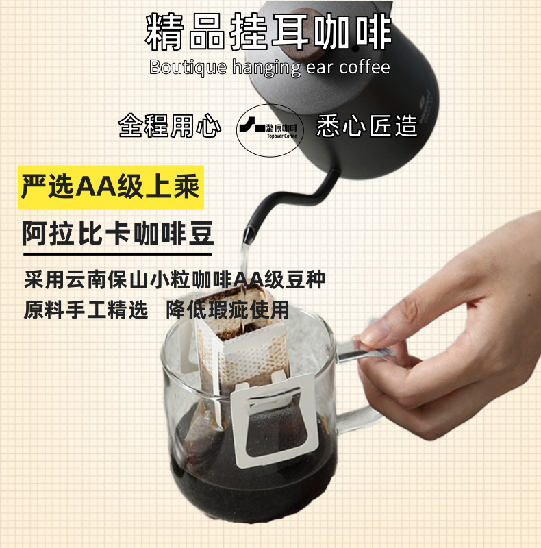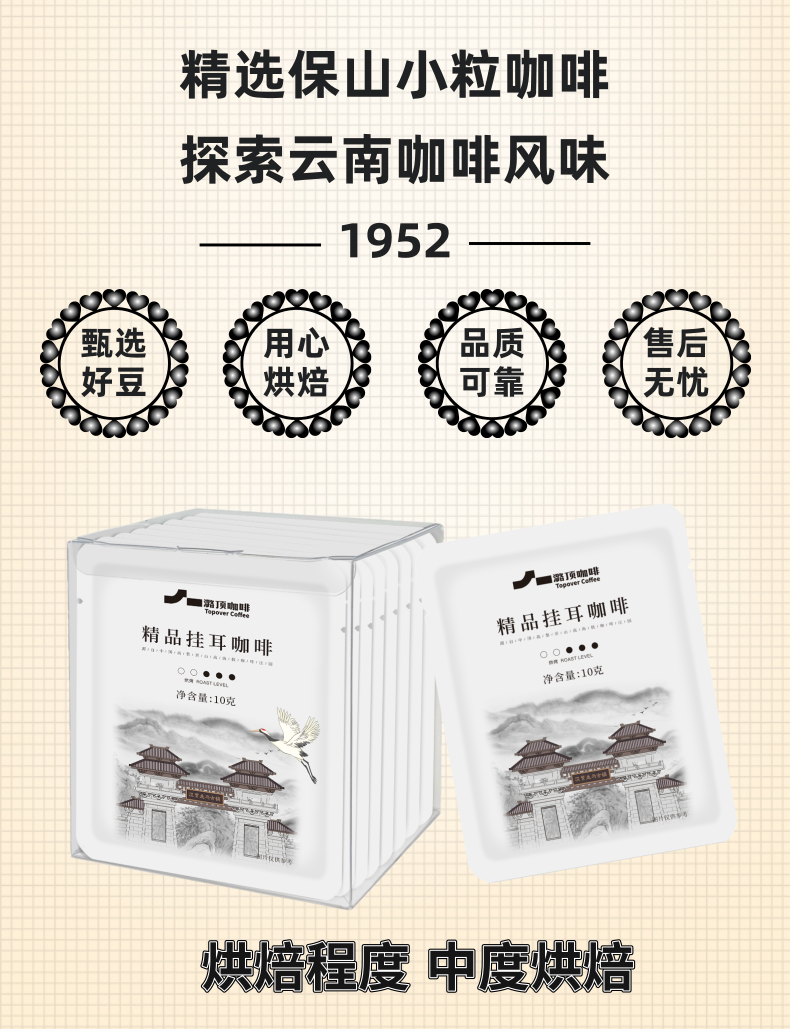 商品名称:云南保山小粒咖啡阿拉卡比豆挂耳咖啡古镇款100g/盒
