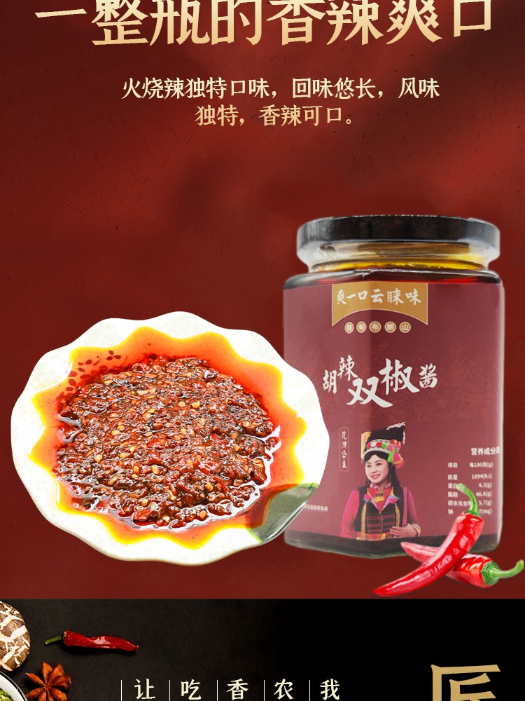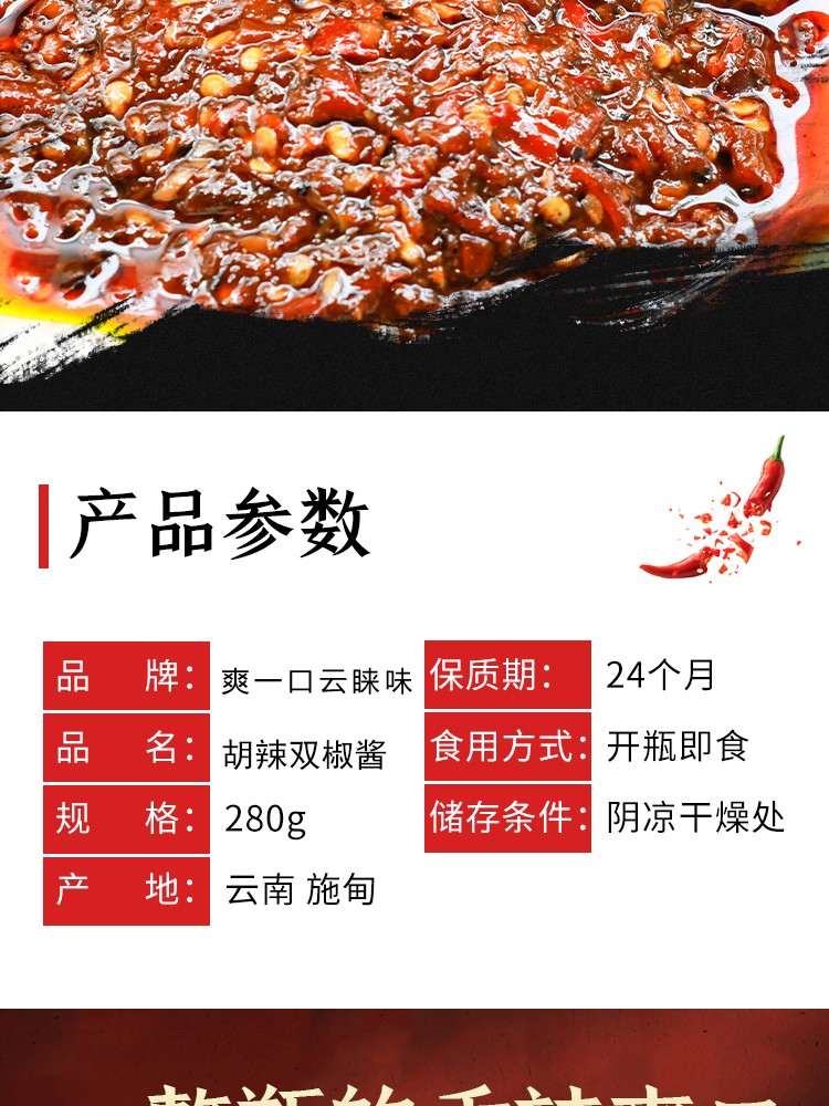 商品名称:云南保山施甸农家自制胡辣双椒酱280g/瓶
