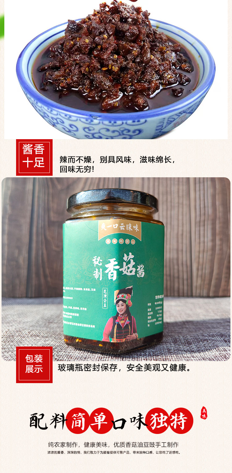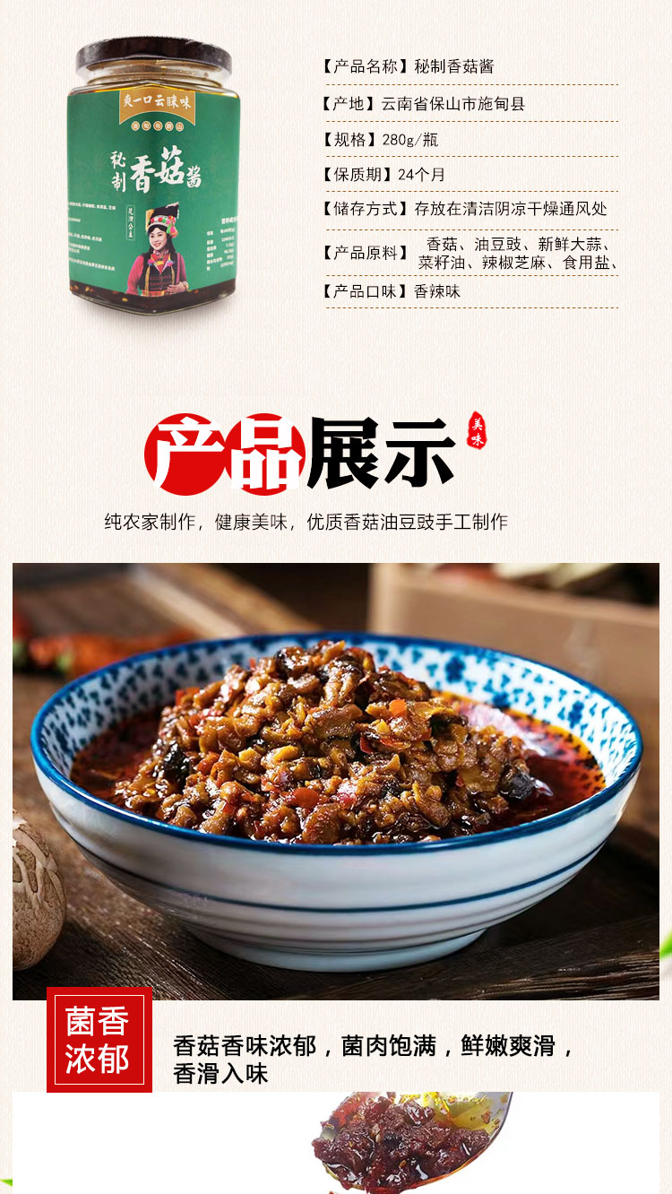 商品名称:云南保山施甸农家秘制香菇酱280g/瓶