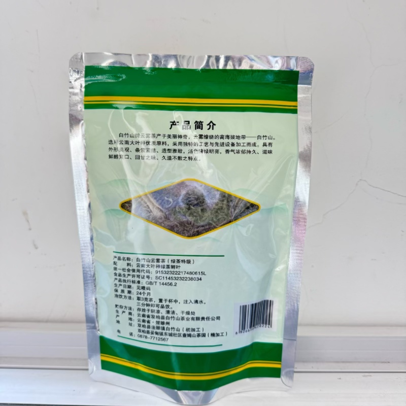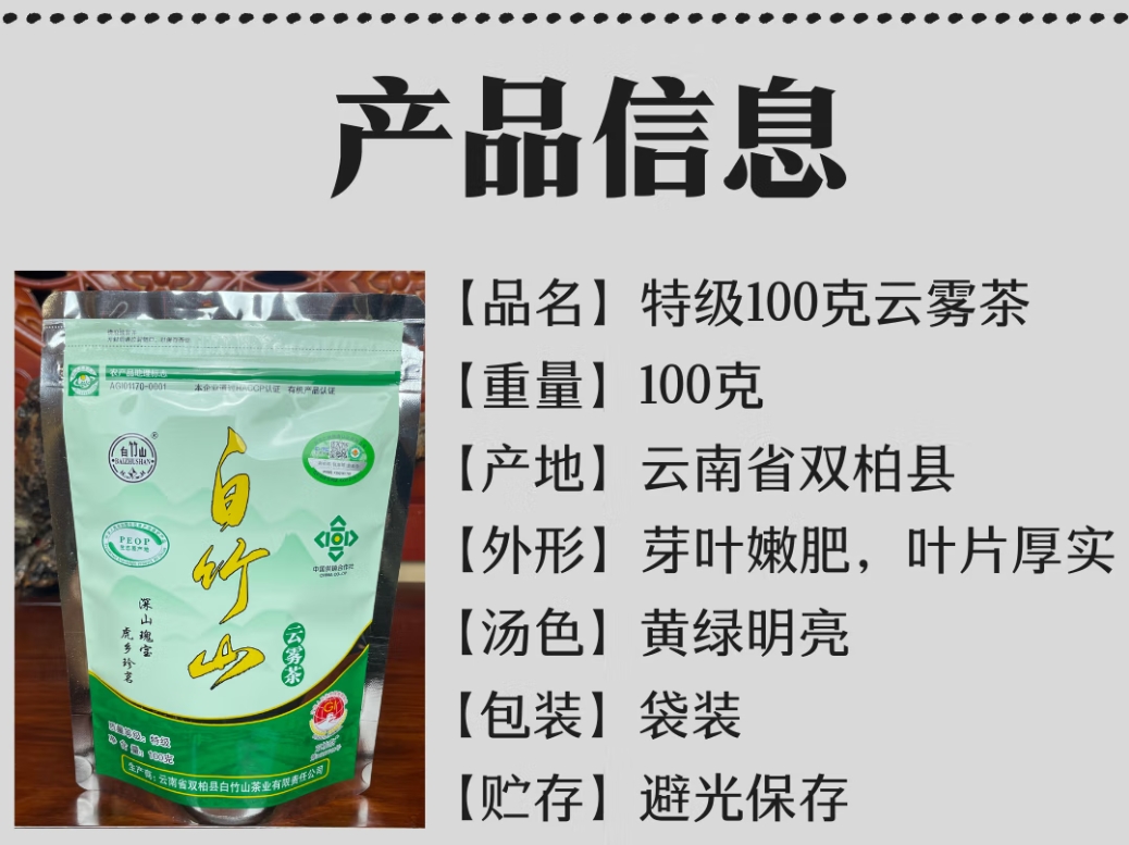 商品名称:白竹山 特级袋装云雾茶100g