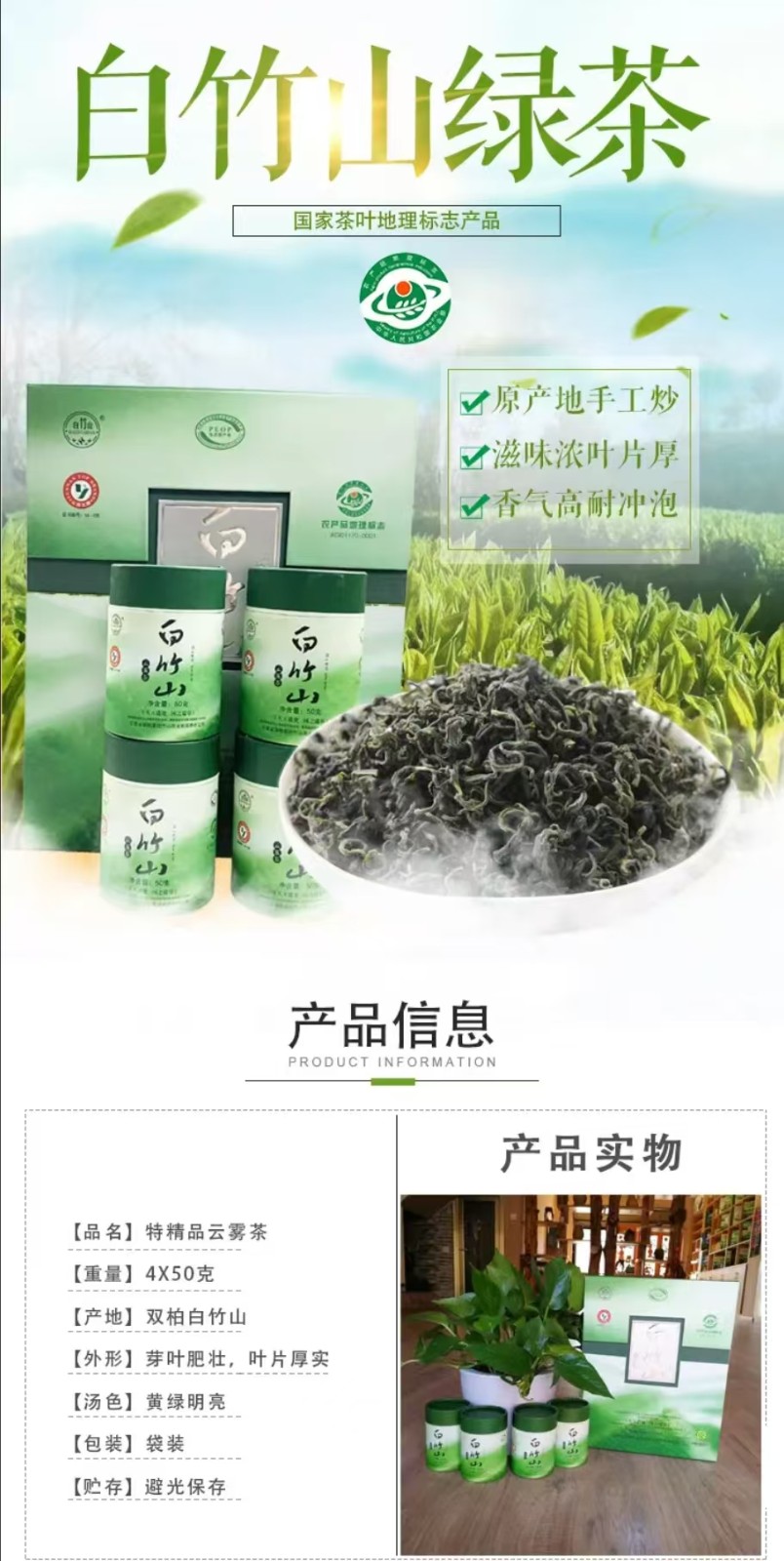 商品名称:白竹山 特精品云雾茶200g礼盒装
