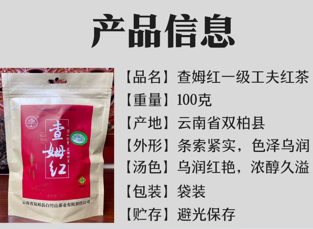 商品名称:白竹山 查姆红一级100g工夫红茶