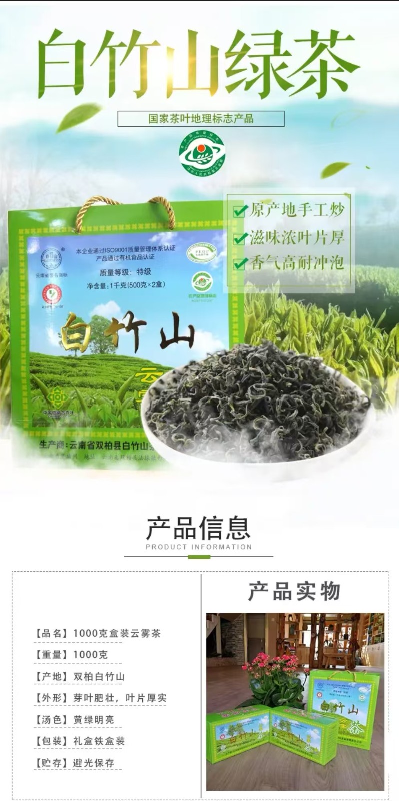 商品名称:白竹山 盒装云雾茶1000g