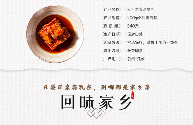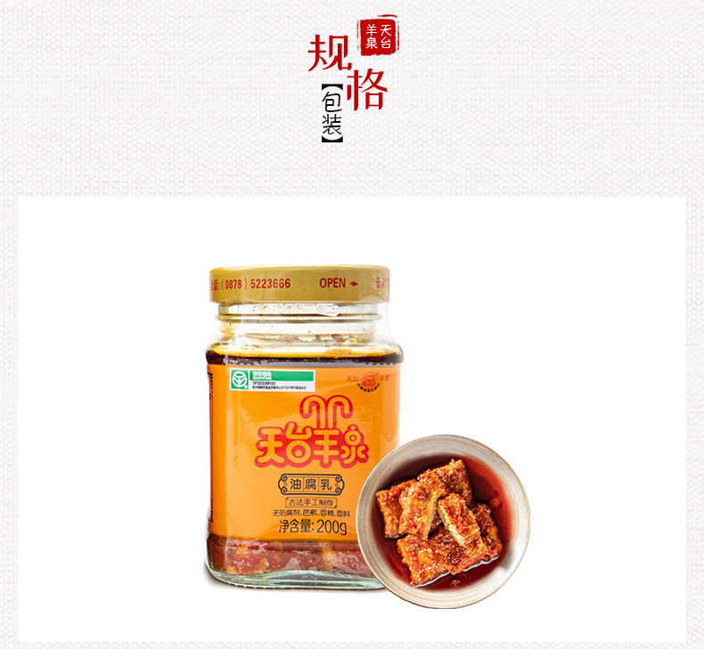商品名称:天台羊泉云南特产牟定香辣豆腐乳美味下饭调味卤腐火锅调料油腐乳 200g*8瓶装