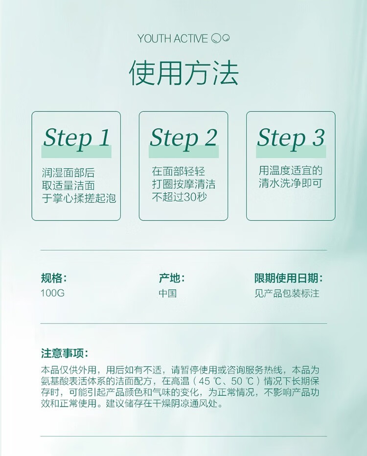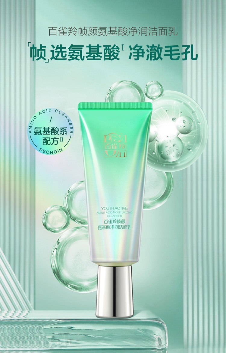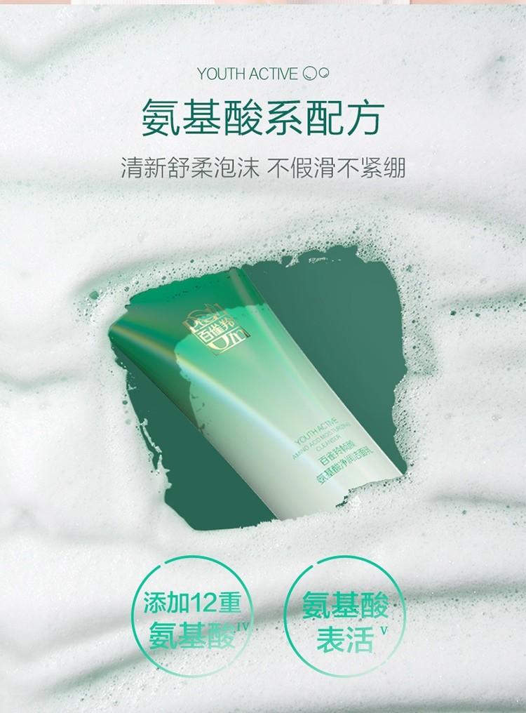 商品名称:百雀羚洗面奶女草本帧颜氨基酸净润洁面乳100G 淡纹修护品质国货