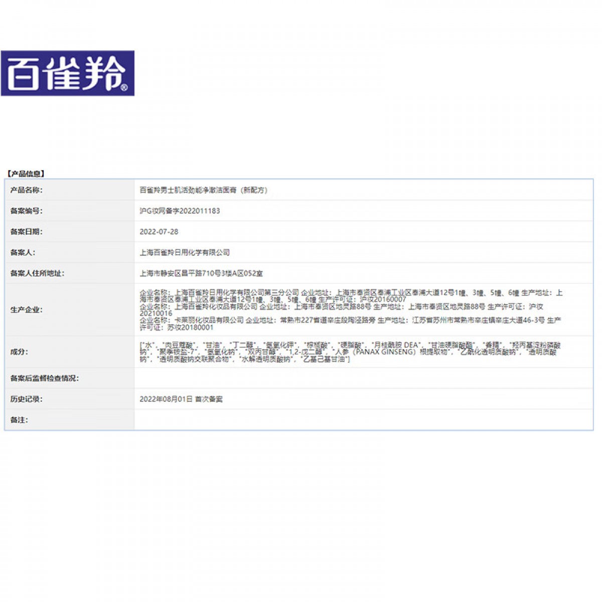 商品名称:百雀羚男士肌活劲能净澈洁面膏(新配方)100g