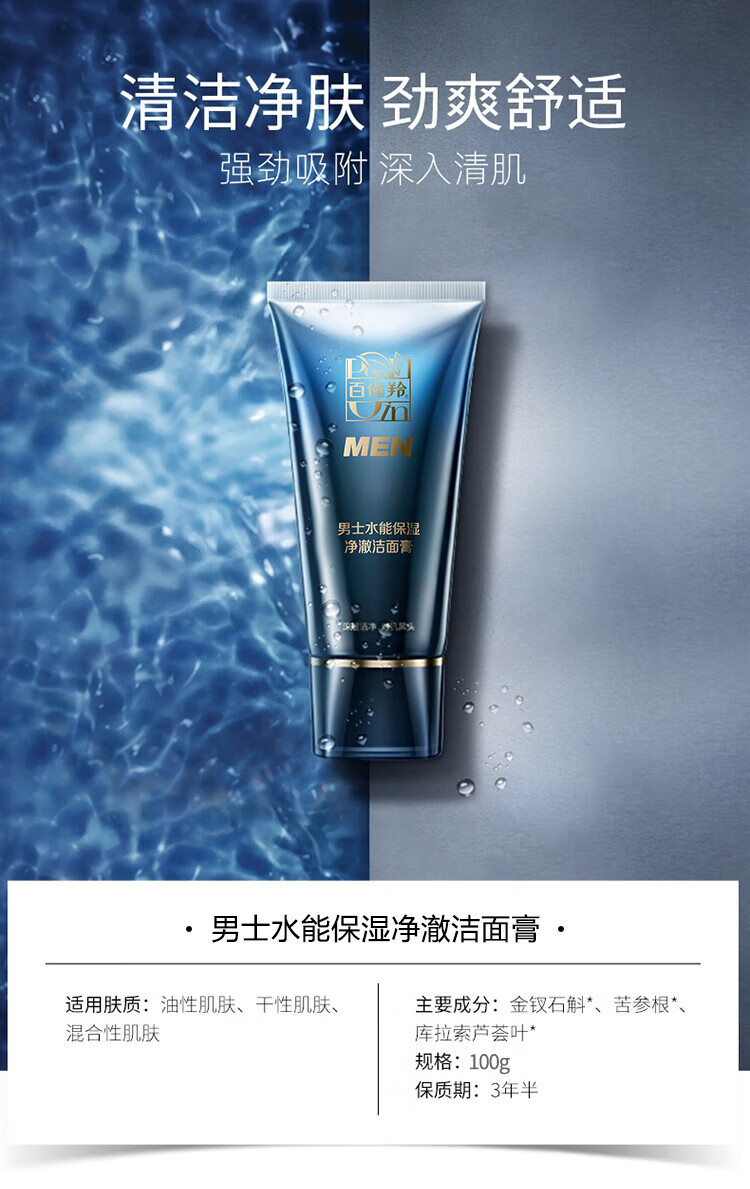 商品名称:【九久同惠 感恩回馈】百雀羚 男士水能保湿系列组合 洁面乳+保湿乳