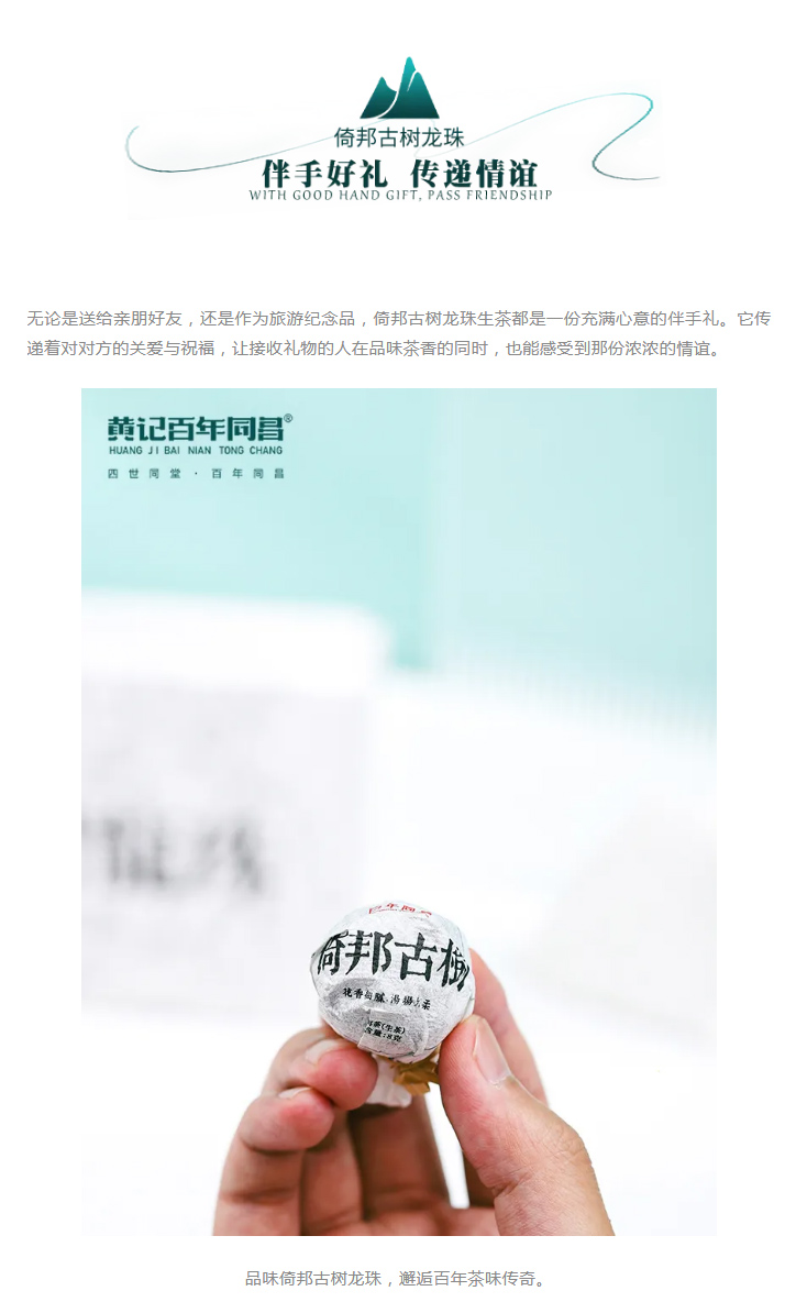 商品名称:【供销优选】黄记百年同昌 倚邦古树龙珠普洱生茶2024年