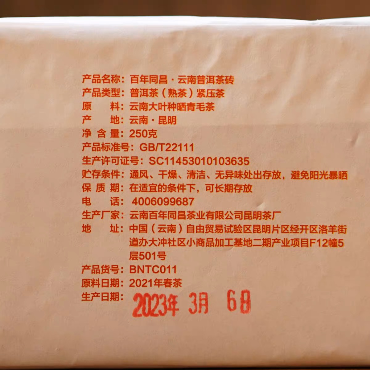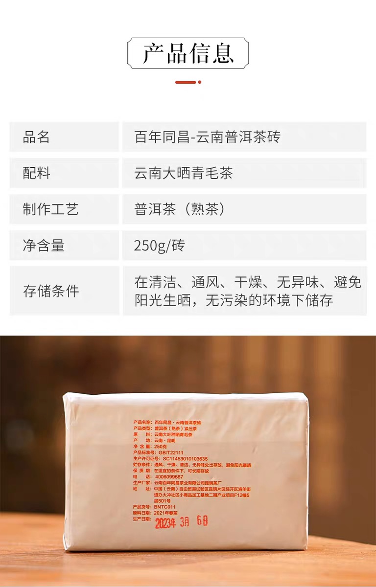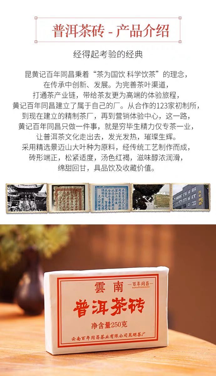 商品名称:【供销优选】黄记百年同昌 古树精品普洱茶砖250克 普洱熟茶 2023年
