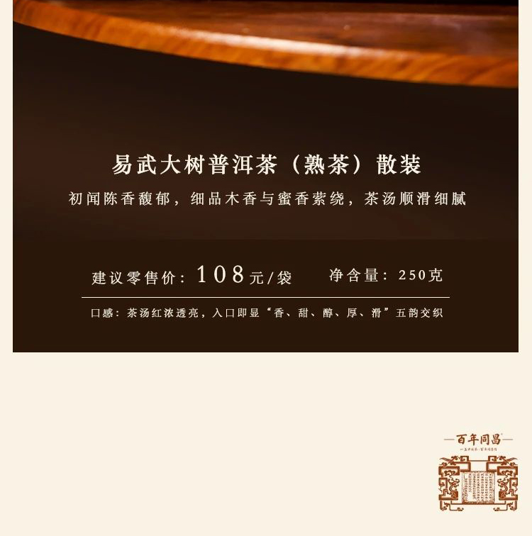 商品名称:【跨年大促】【供销优选】黄记百年同昌 易武大树-五年陈韵 普洱熟茶250克袋装 2025年