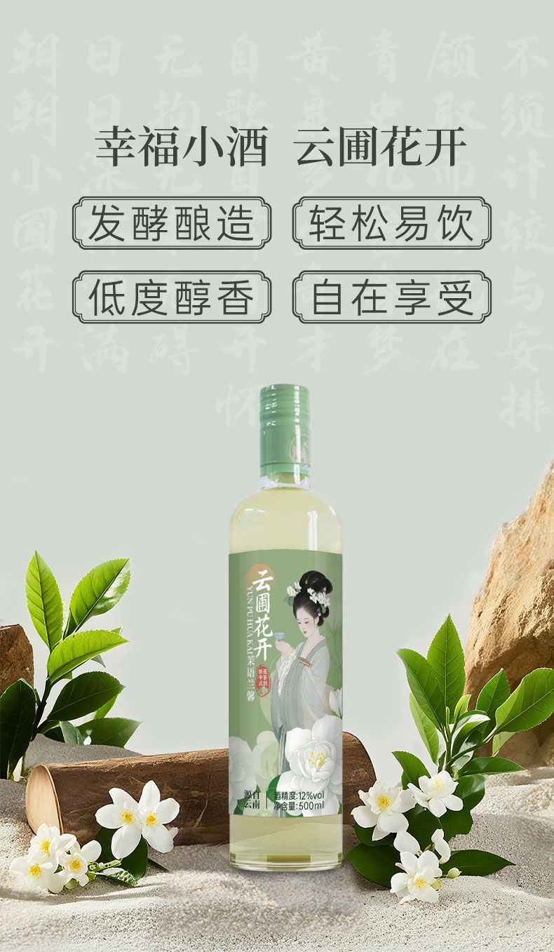 云圃花开 茉语兰馨 中式花茶酒12度 500ml/瓶*6瓶装