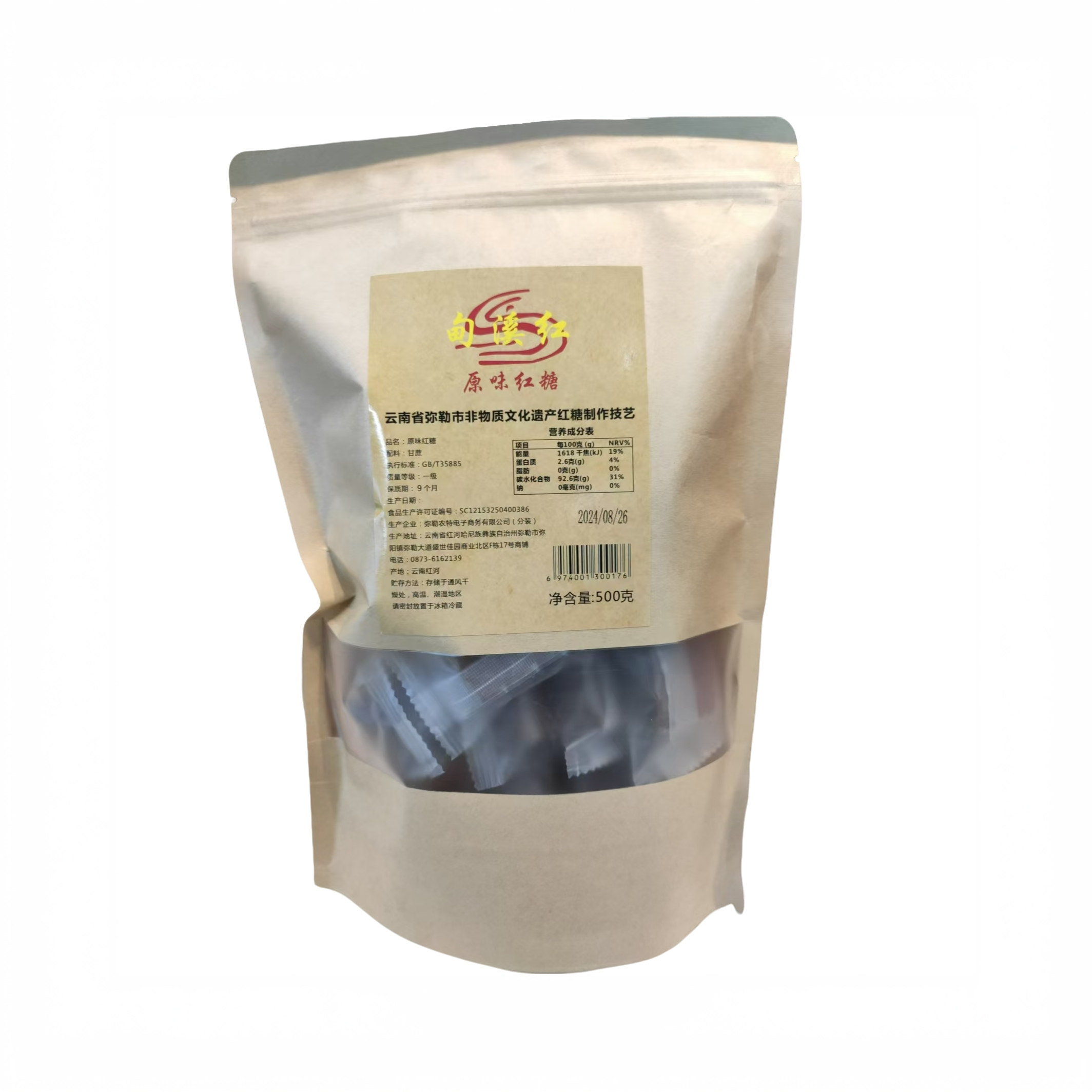 商品名称:弥勒竹园非遗手工红糖500g独立袋装