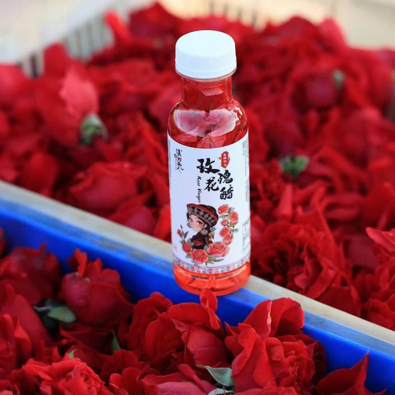 新鲜墨红玫瑰花瓣+荞麦醋+黄冰糖发酵而成,口感均衡,酸酸甜甜,清爽解腻开胃。