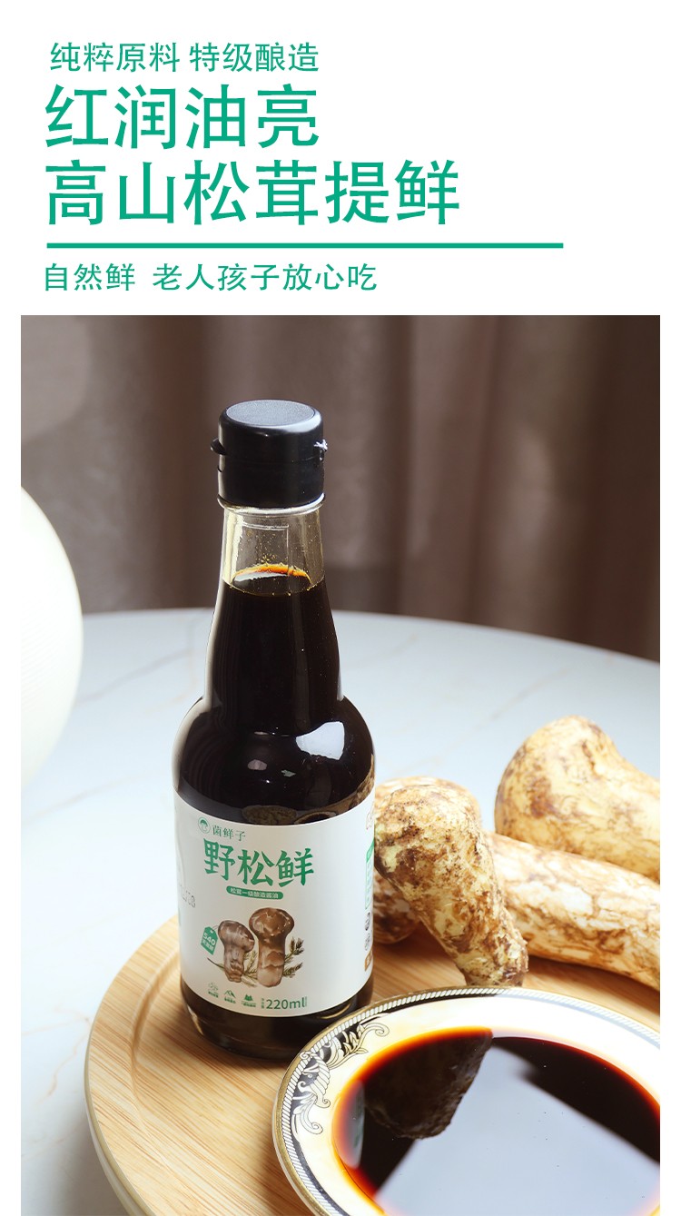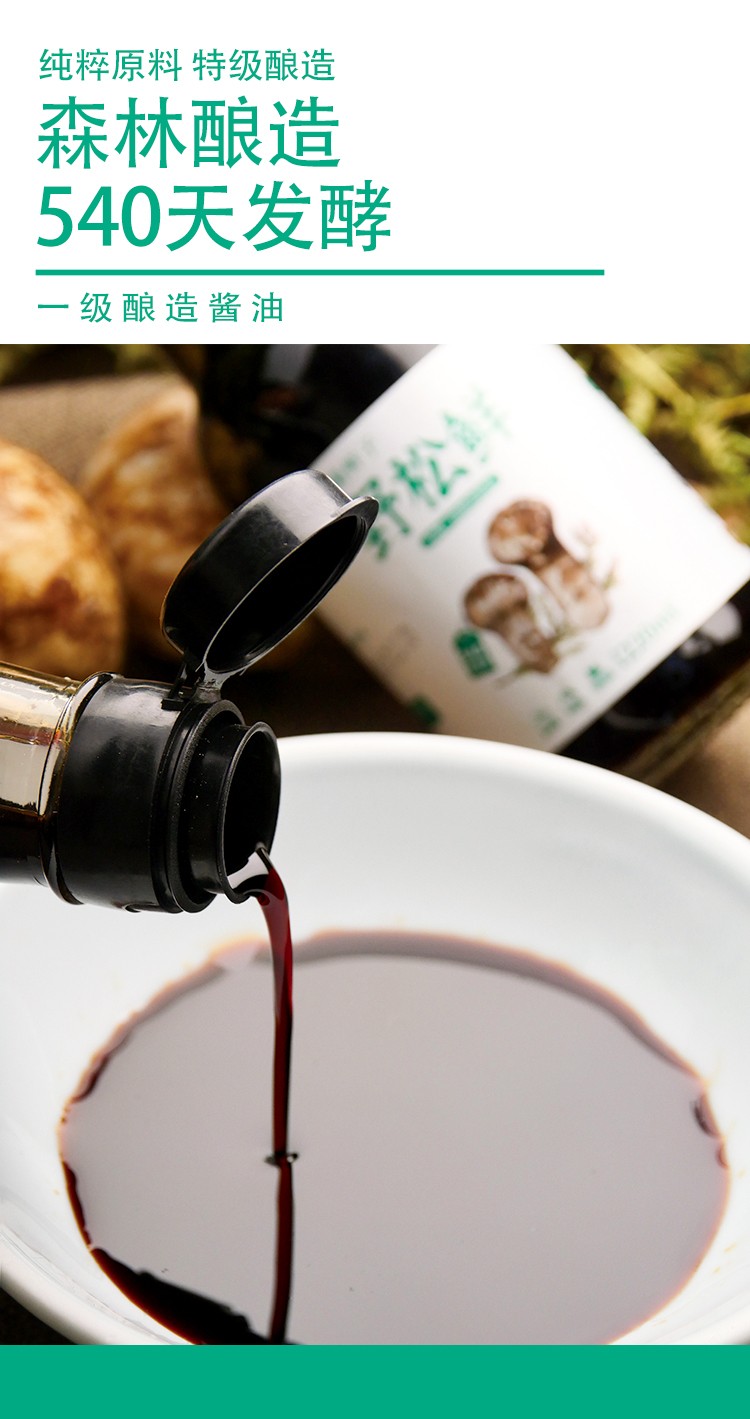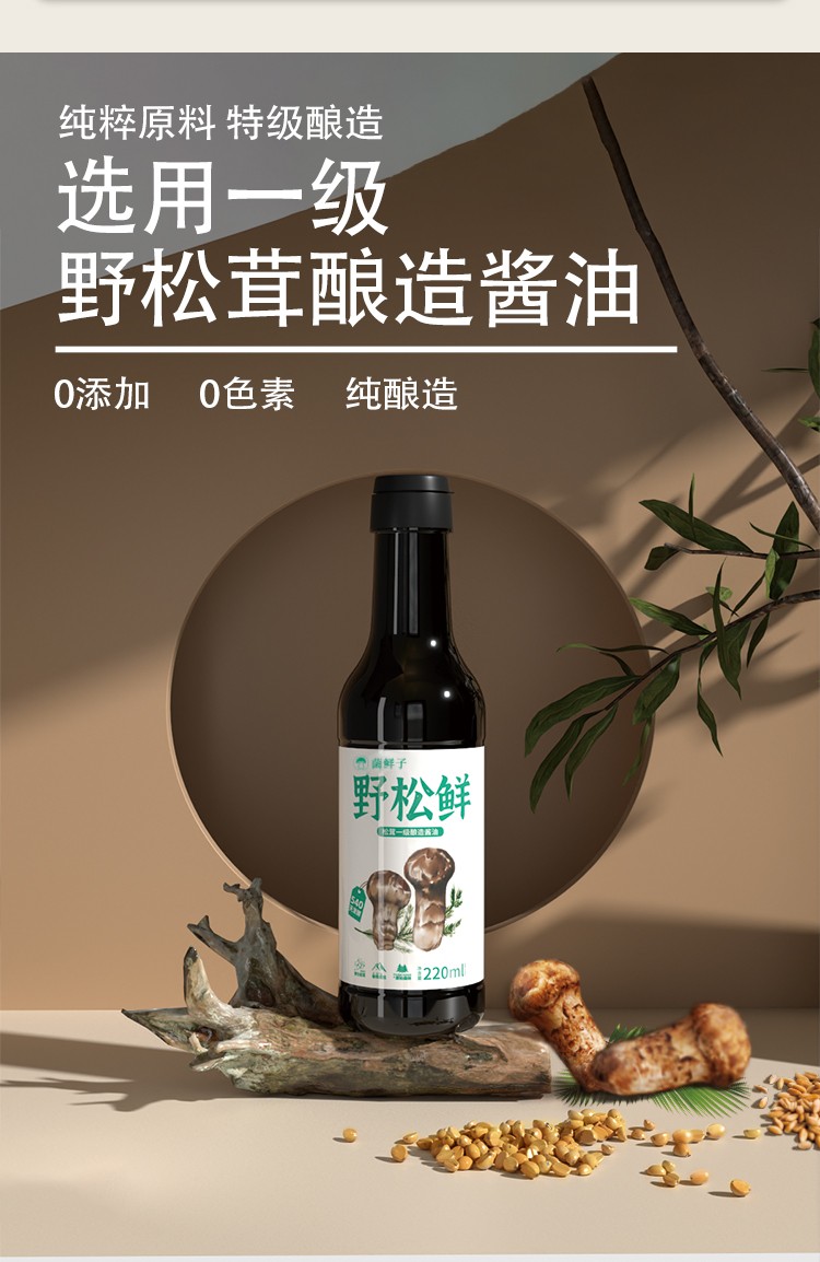 商品名称:野松鲜松茸酿造酱油 非转基因大豆原颗发酵 添加松茸提鲜 一级酿造酱油