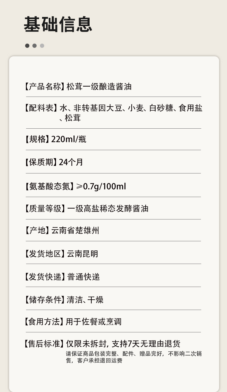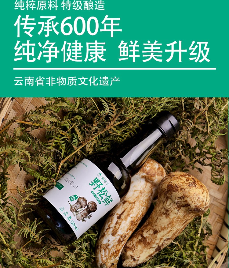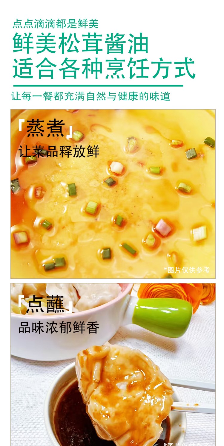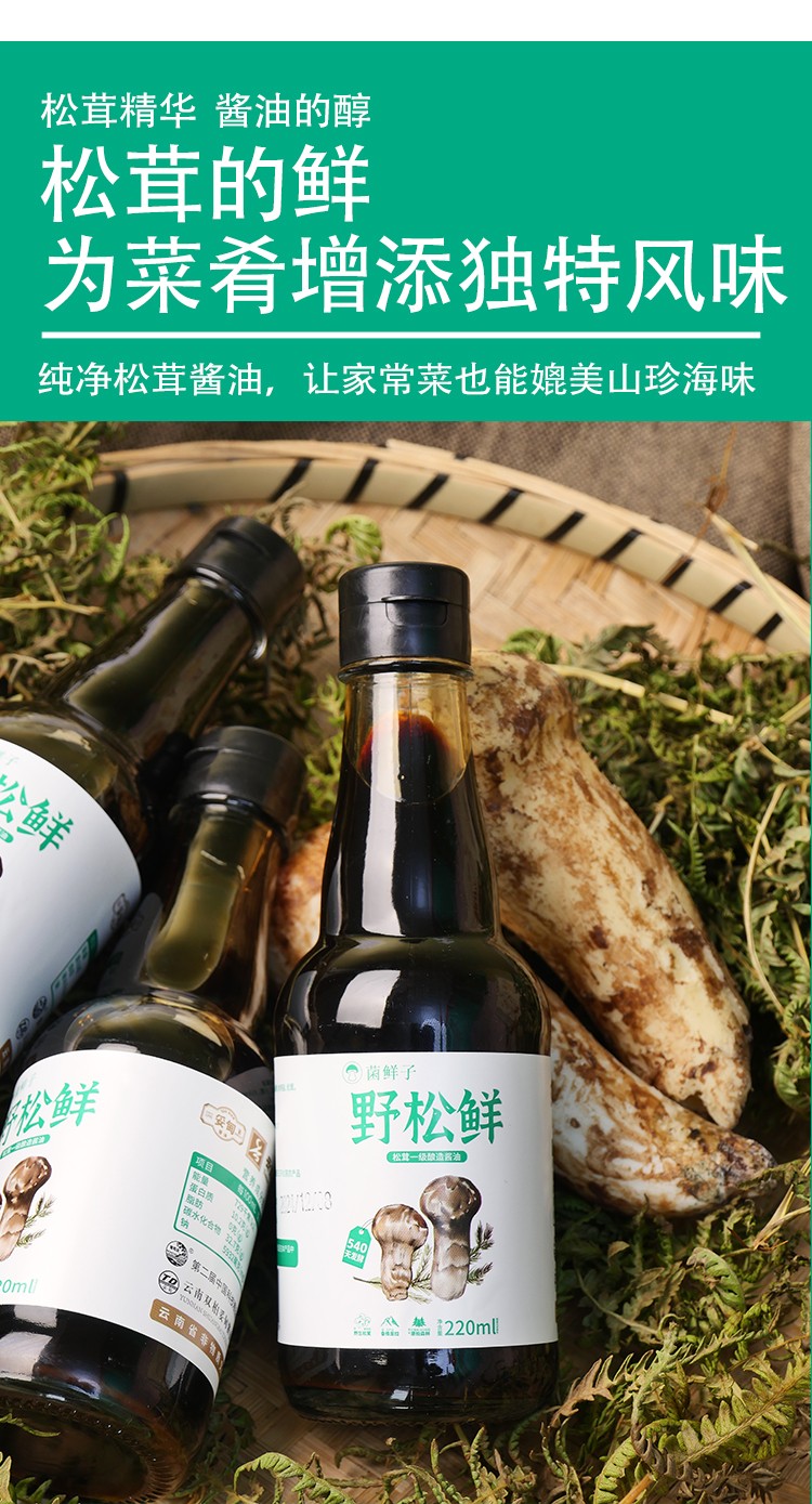 商品名称:野松鲜松茸酿造酱油 非转基因大豆原颗发酵 添加松茸提鲜 一级酿造酱油