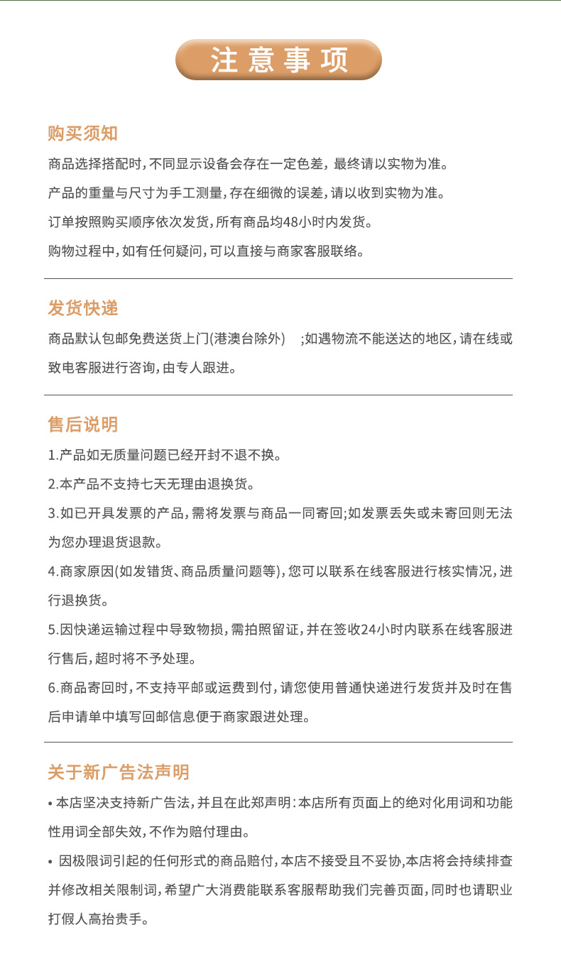 不支持7天无理由退货