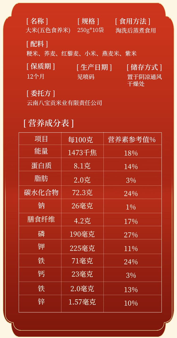 商品名称:八宝贡五色食养米250g*10/盒