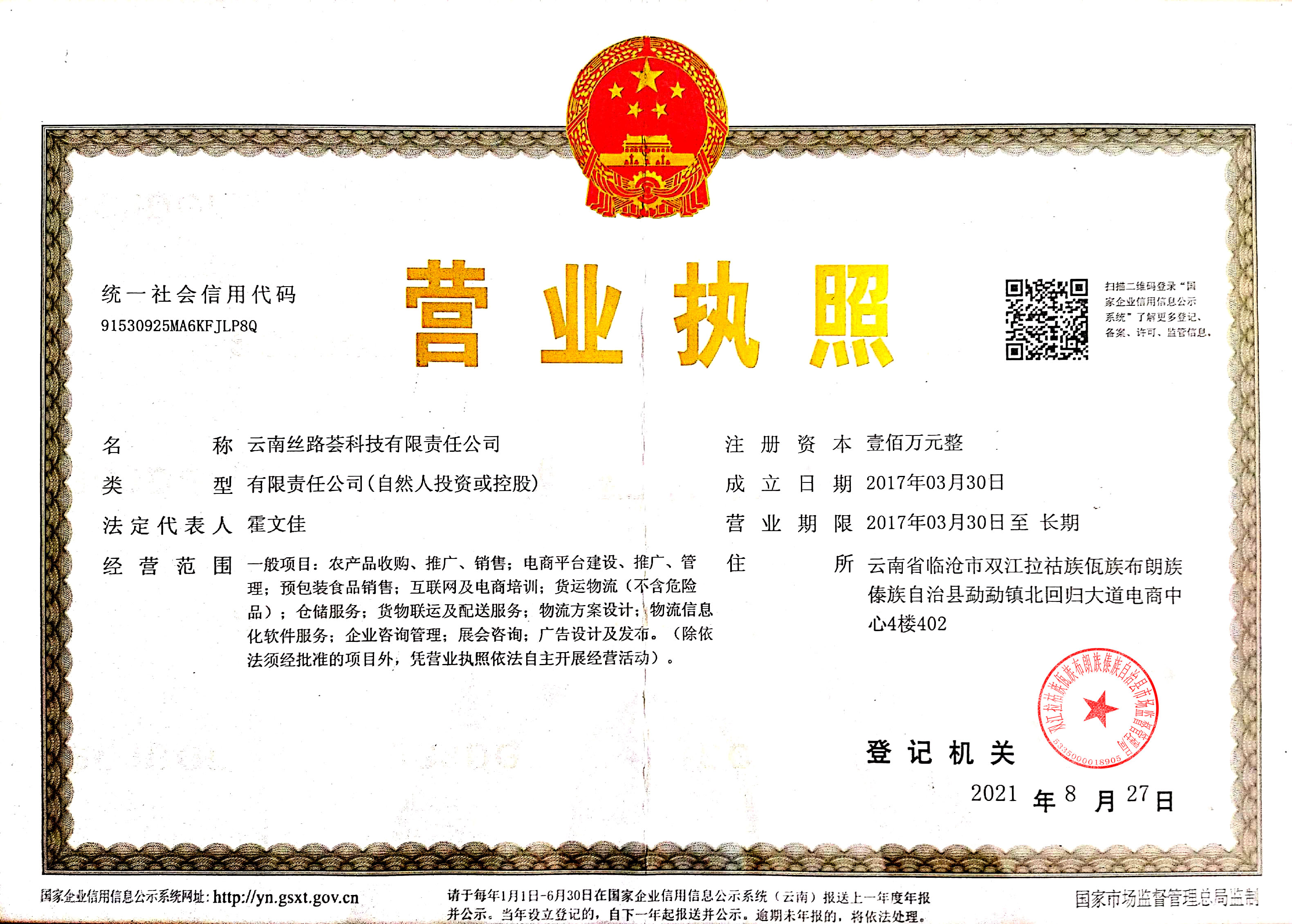 中国云南省临沧市双江拉祜族佤族布朗族傣族自治县 勐勐镇北回归大道电商中心4楼402