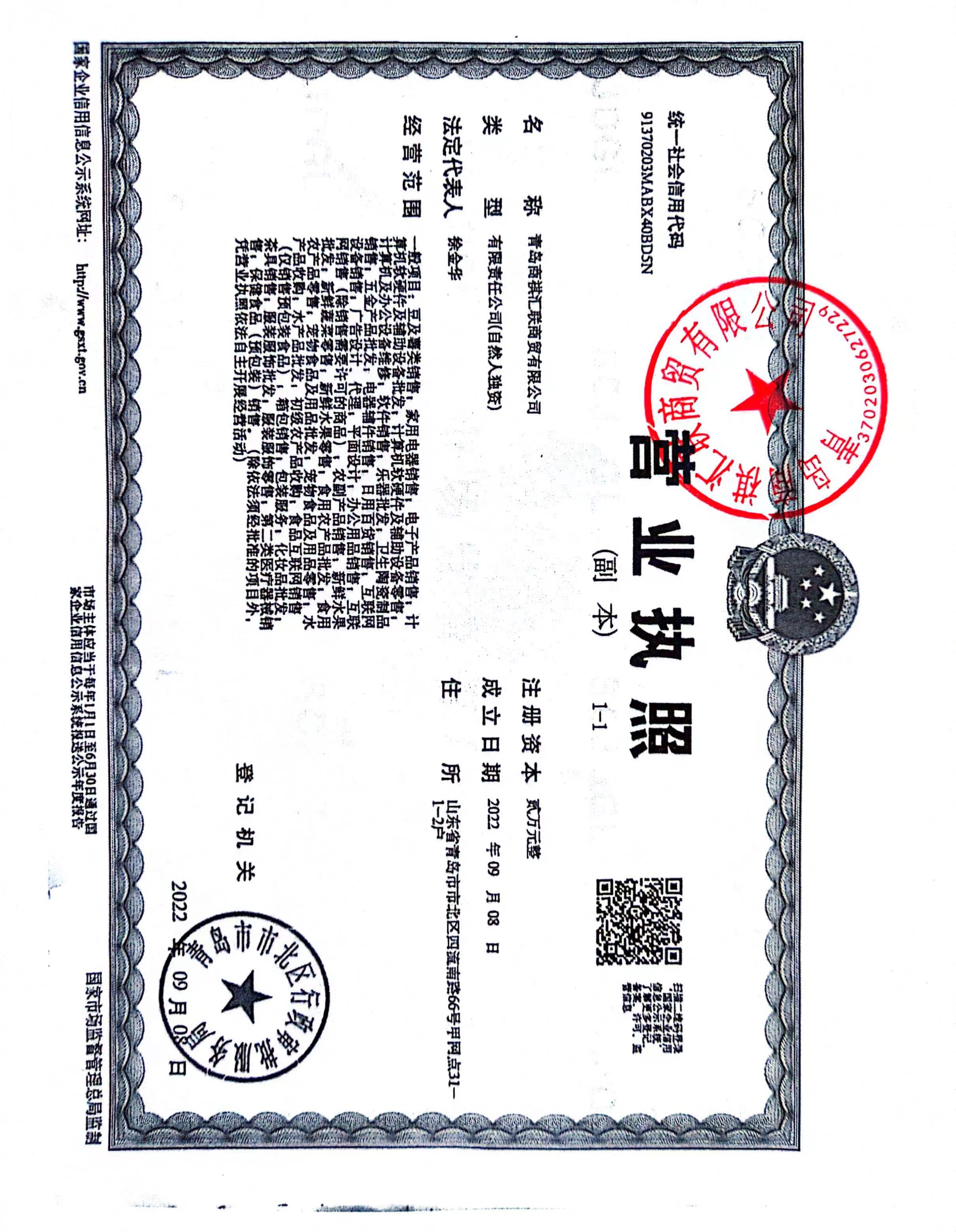 营业执照经营范围: